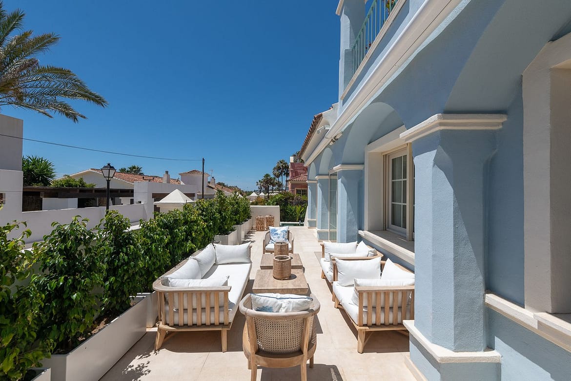 Beautifully finished House step to the Sandy Beach of Marbella, Finished with the highest quality building materials located 50 meters from the beach, walking to Puerto Banús and San Pedro / Guadalmina Baja and very close to several top Golf Courses of Marbella and in a very private and Quiet Urbanization.