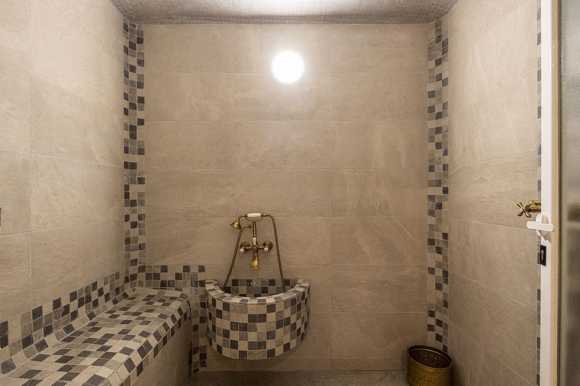 The 152m2 ground floor consists of an ample living area with 3 bedrooms, all en-suite bathrooms, a Turkish Hammam, a laundry room, a kitchenette and two porches. The first floor (246m2 + 25m2 terrace) has the master bedroom with en-suite bathroom, and two other bedrooms with separate baths. The elegant dining room is next to the spacious living room with direct access to the tastefully decorated covered terrace, where you can enjoy the fabulous views accompanied by a nice meal. There is a barbecue with dining area by the pool as well, and a passage will take you down to the orchard area with avocado and lemon-trees, still part of your plot. There is a garage for two cars, while 5 others can park comfortably in the car port area.