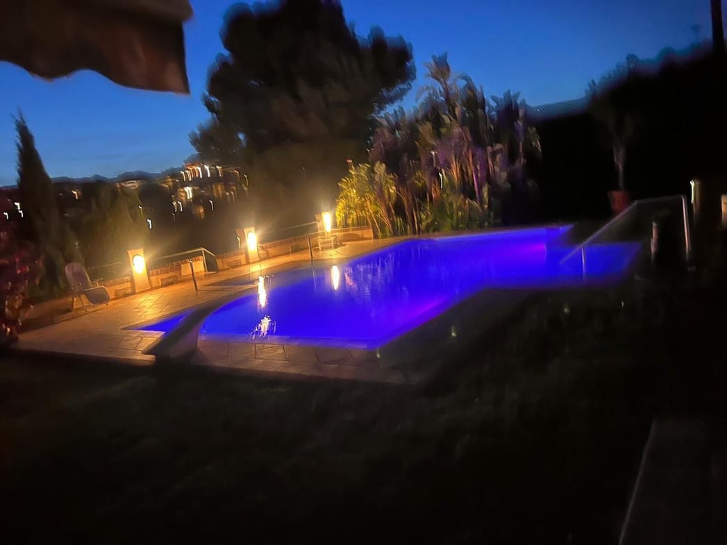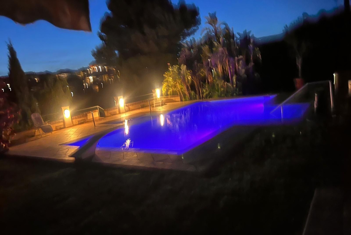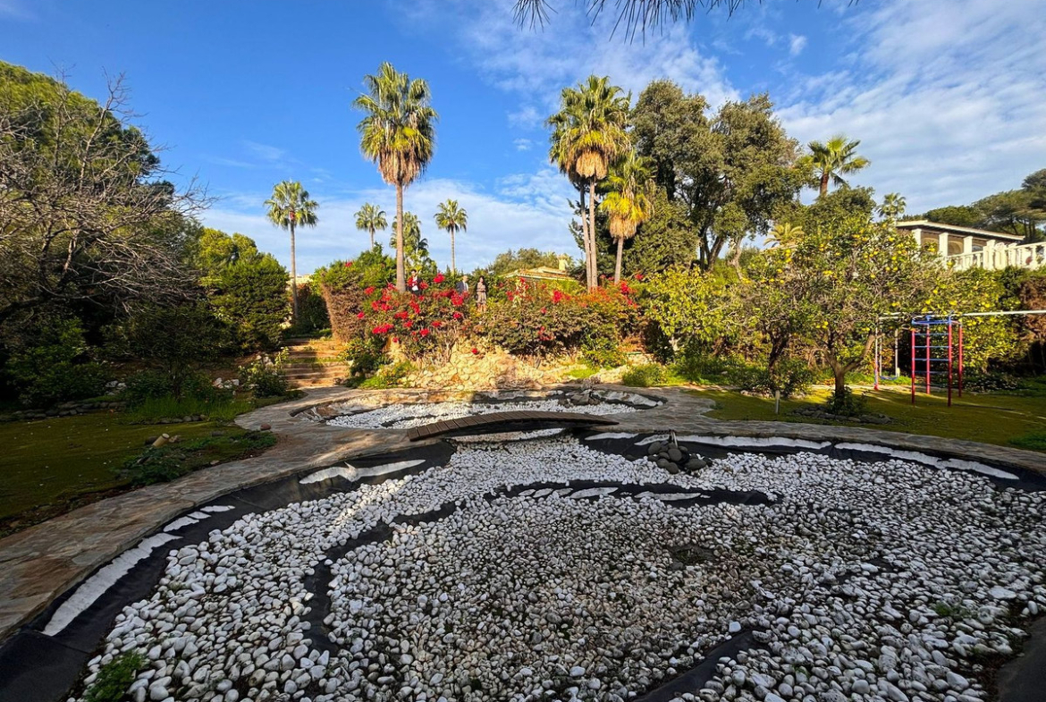 The property currently includes a single-storey house with 6 bedrooms, 5 bathrooms, and spacious porches, as well as a garden with a heated pool, its own well, a pond with lighting, and an irrigation system. It also features auxiliary buildings such as a garage (170 m²), a service house (40 m²), and a workshop (20 m²).