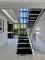 1 bedroom suite on the ground floor. A Master bedroom enjoys access through a bespoke walk-in wardrobe. The lower ground floor consists of 2 large bedrooms with en-suite bathrooms, and a large games room featuring a dining table, bar and TV area. The first floor features a roof terrace and a spacious bedroom suite enjoying serene views. These spaces are accessed via a sleek and modern staircase. Each bedroom has a TV, generous storage space and is immaculately presented. The villa also has a huge garage for 3 cars