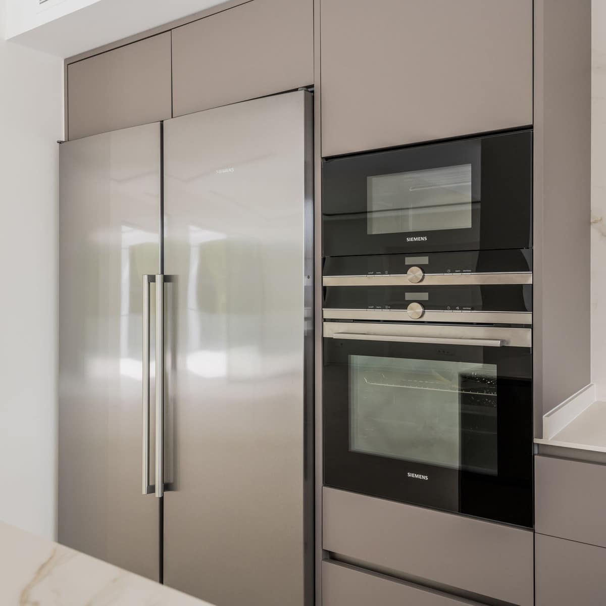 The villa boasts 6 en-suite bedrooms, including an elegant master suite with walk-in wardrobe and a designer bathroom with freestanding bathtub and separate shower. The main living area integrates a stylish kitchen with large island and Siemens premium appliances, creating the perfect space for family life and entertaining.