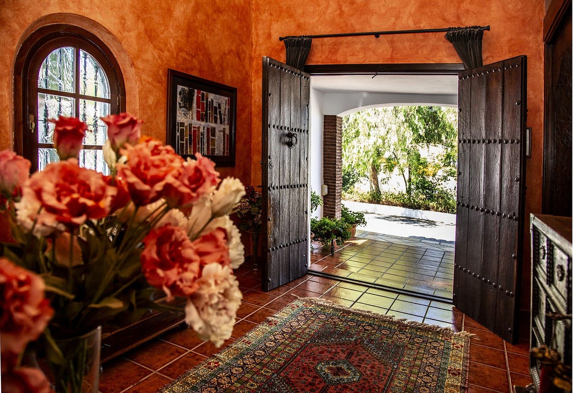 The property is distributed on two floors: on the ground floor, there is a large entrance hall with double height and wooden coffered ceiling, a guest toilet, the dining area, kitchen, office and living room. In the west wing there is a bedroom with bathroom ensuite, dressing room and direct access to the porch and garden and 2 bedrooms with a bathroom. In the east wing there is a bedroom with bathroom ensuite and private terrace with pergola, ideal for guests and the garage with space for two cars. All around the house there are different terraces, porches and designer patios.