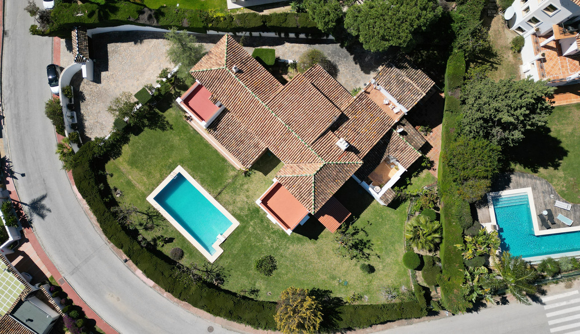 Located in one of Marbella’s most sought-after areas, this magnificent detached villa sits on a generous corner plot of 1,755 m² in the prestigious Avenida del Generalife 28. South-southwest facing, it boasts breathtaking views of the sea and Gibraltar. The property enjoys a strategic location that offers both privacy and tranquillity, while being perfectly connected to all amenities, international schools, renowned golf courses, and the glamour of Puerto Banús.