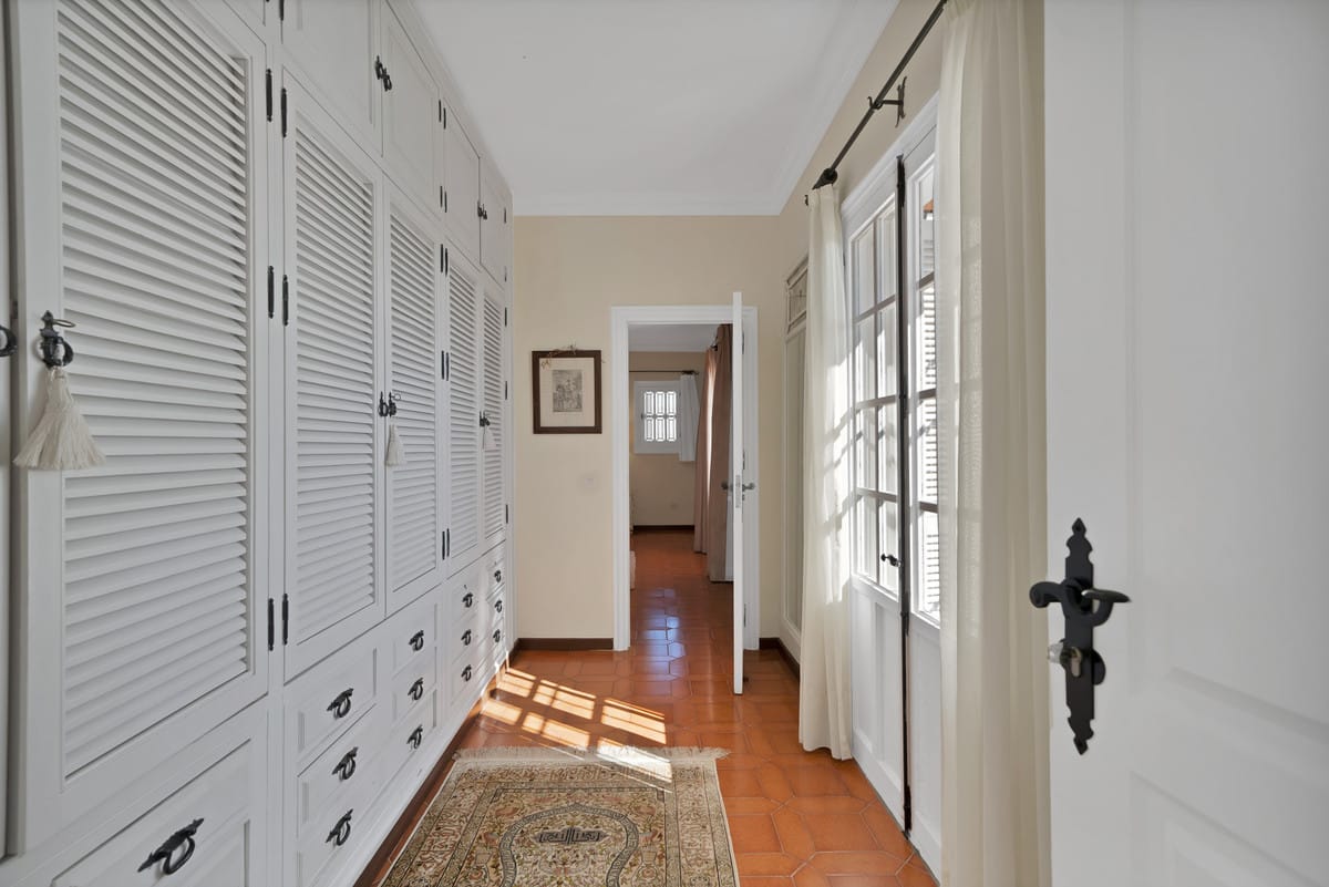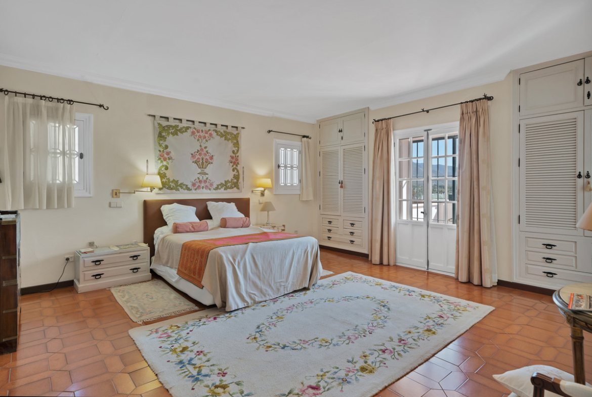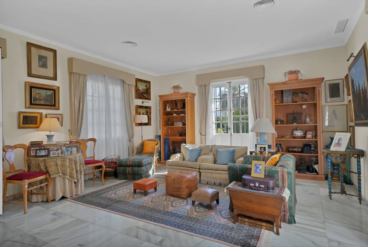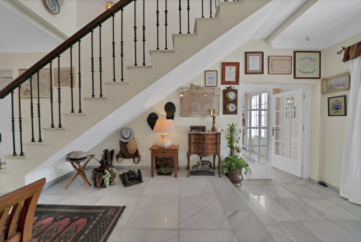 With a total built area of 700 m² (as per the Cadaster or land registry), the villa offers generous living spaces, ideal for family life. The ground floor features a spacious living room of over 40 m², a separate dining area, a large study, guest WC, and a fully equipped kitchen with a service area including a good-sized bedroom and bathroom. The inviting covered terrace opens directly onto the beautifully maintained mature garden and private pool – the perfect setting to enjoy Marbella’s enviable climate.