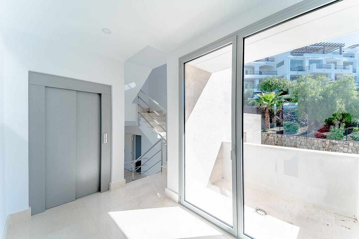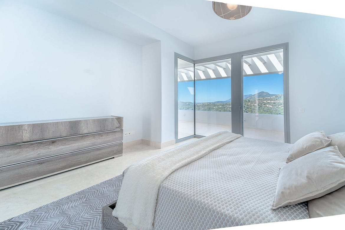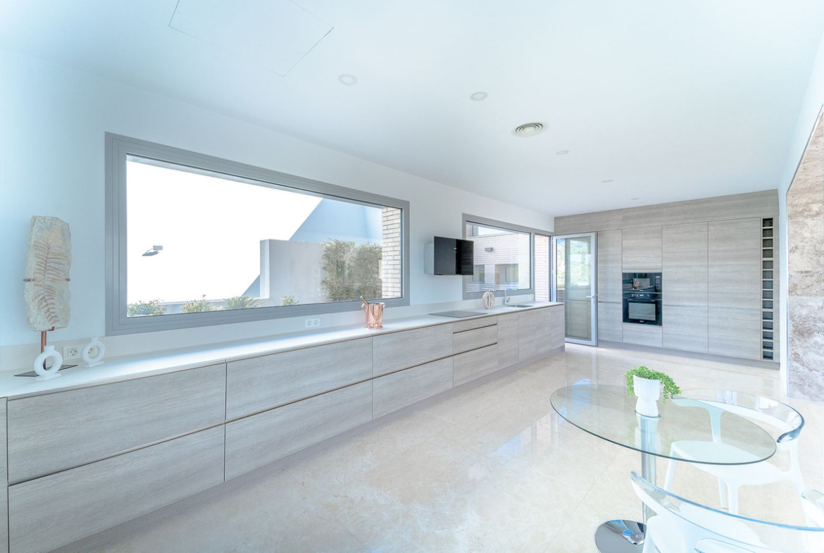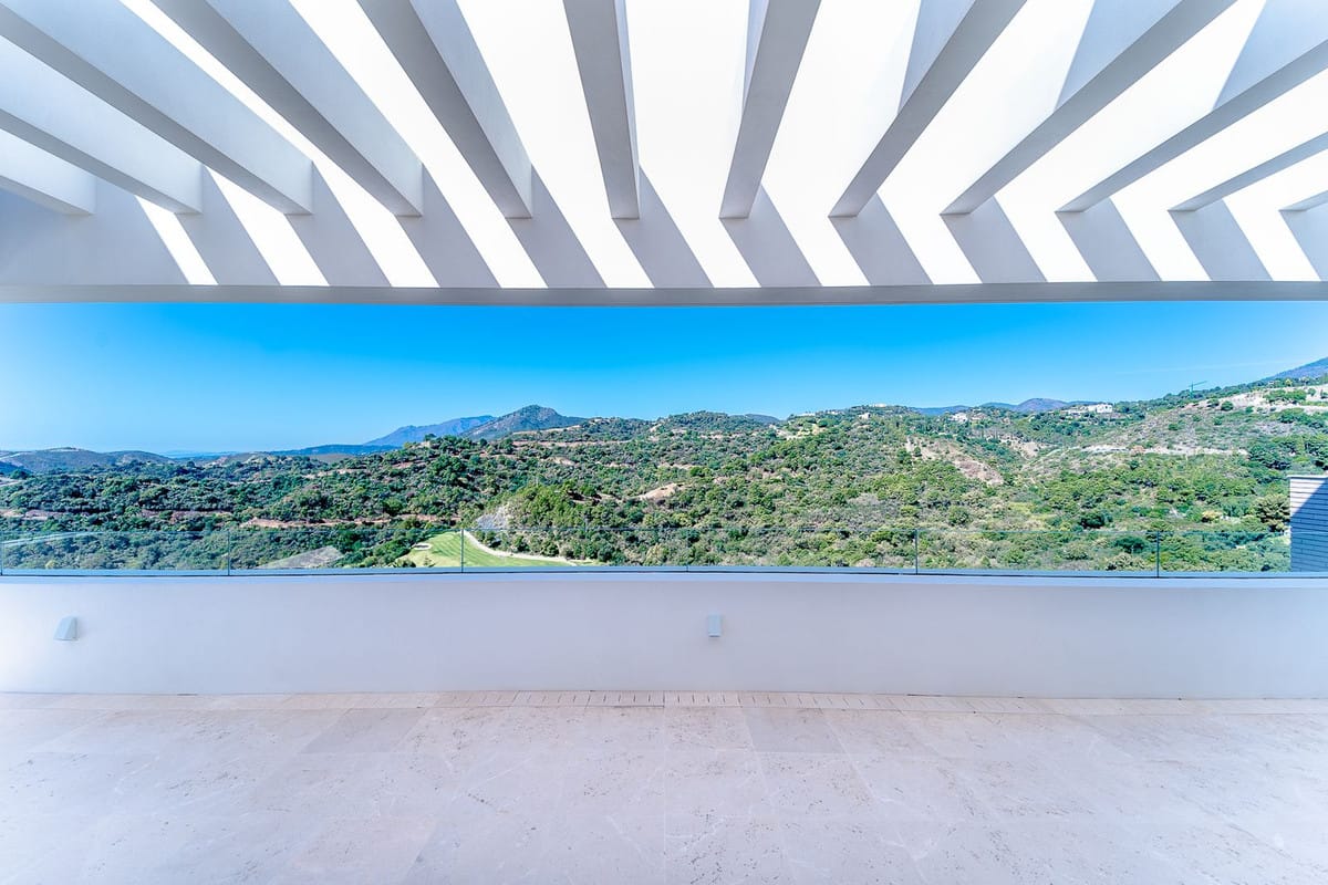 Newly built contemporary villa, finished on two floors plus basement, plus roof top, accessible by stairs and elevator. It is located in a natural environment, surrounded by golf and mountain, providing nice open views to those, panoramic sea view from the solarium and good sea view from some areas of the house. It is prepared to install amenities such as gym, spa area, cinema room and a wine room. It is a very spacious property, built with top quality materials, such as natural stone and Travertino marble floors. A very nice area with 24h security and a club house that offers an 18 holes golf course designed by Severiano Ballesteros, a tennis club, a bowling alley, restaurants, shops and a gym.