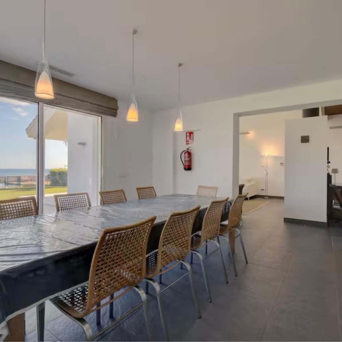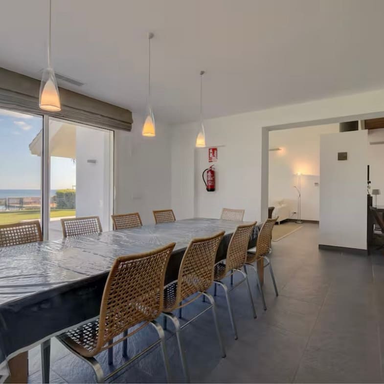 Modern luxury villa set within a vast private and peaceful estate offering breathtaking sea and mountain views featuring a stunning 16 x 6 meter private infinity pool surrounded by sun and shaded terraces ideal for relaxing sunbathing or dining al fresco with over 300 days of sunshine per year front and rear terraces to enjoy the sun all day long beautifully landscaped gardens with palm trees and flowers providing plenty of space to unwind or play fully enclosed property making it perfect for families with children the main villa includes 2 double bedrooms with ensuite bathrooms on the ground floor and 2 triple bedrooms with a shared bathroom upstairs a private self-contained apartment located just below the pool around 50 meters from the villa includes 2 double bedrooms one full bathroom a living room dining area kitchen air conditioning private terrace and game room with ping pong and darts total capacity for up to 16 guests 14 in beds plus 2 on a sofa bed in the apartment lounge for groups of up to 10 guests the apartment is used as a game room only with no bedroom access from 11 guests and up the full apartment is available including bedrooms complete privacy guaranteed as the apartment is never rented separately exclusive use of the entire estate pool gardens and all outdoor areas fully equipped with sunbeds hammocks parasols barbecue shaded terrace and outdoor toilet wifi Apple TV Netflix SONOS Play 5 sound system and private parking for up to 6 cars beach restaurants and bars just 2 kilometers away an ideal retreat for families or groups seeking luxury comfort and total privacy in a stunning Mediterranean setting