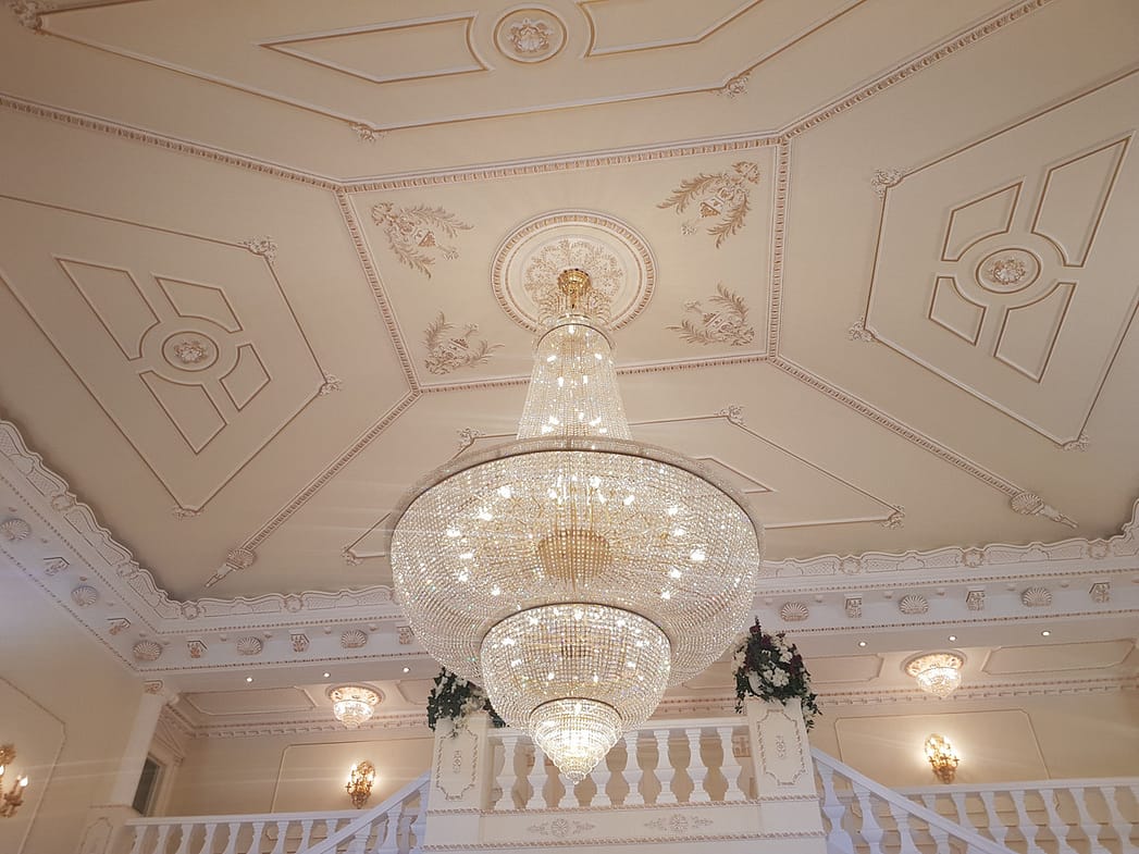 A grand entrance hall with a spectacular curved marble staircase leads you to the upper level, also accessible by the lift. The upper level has two bedrooms, where you will find the master suite with living area and dressing room, with detailed hand painted finishes on walls and ceilings. The fixtures and fittings throughout this home are of the highest qualities