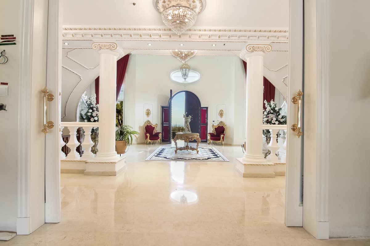 The semi basement homes the most exquisite entertainment area with hand painted murals and golden ornate statues decorating the Egyptian lounge and cocktail bar. On this level you also have a further two guest suites, decorated in fitting with the ancient Egyptian theme and a modern gymnasium.