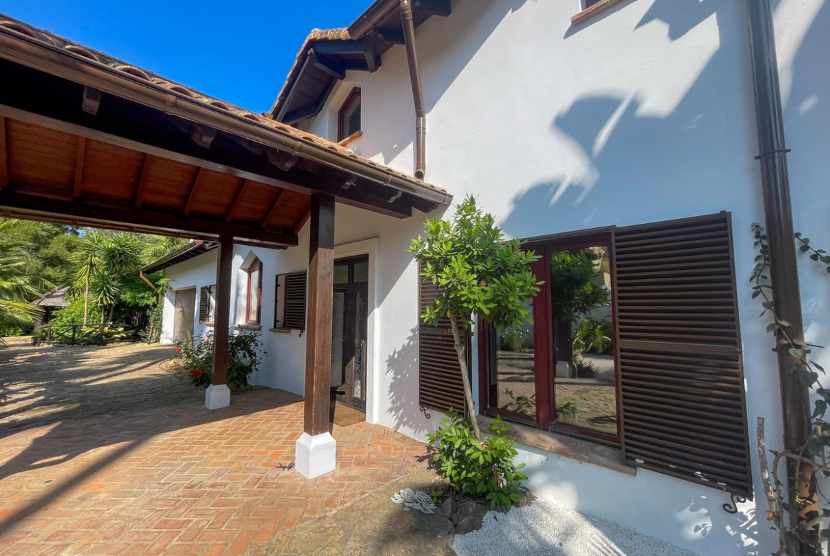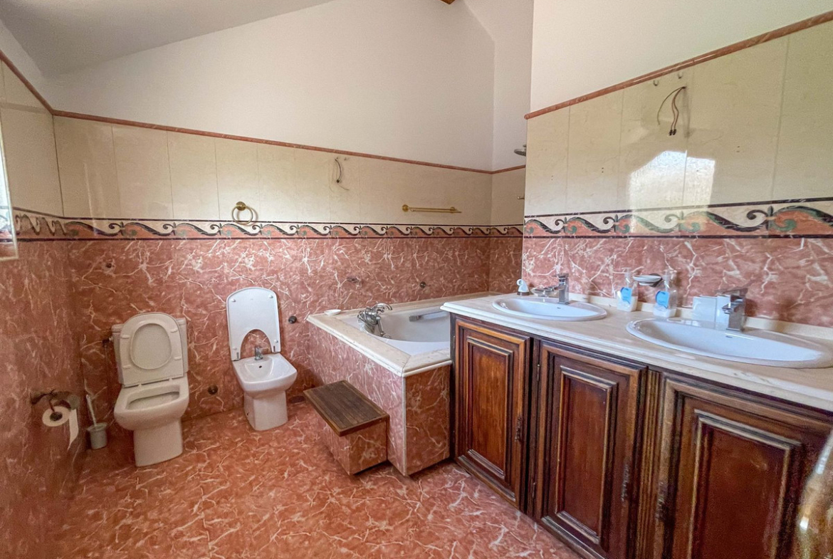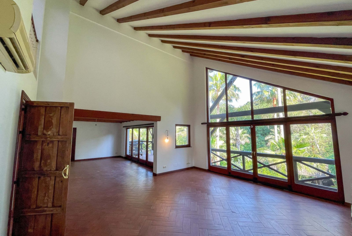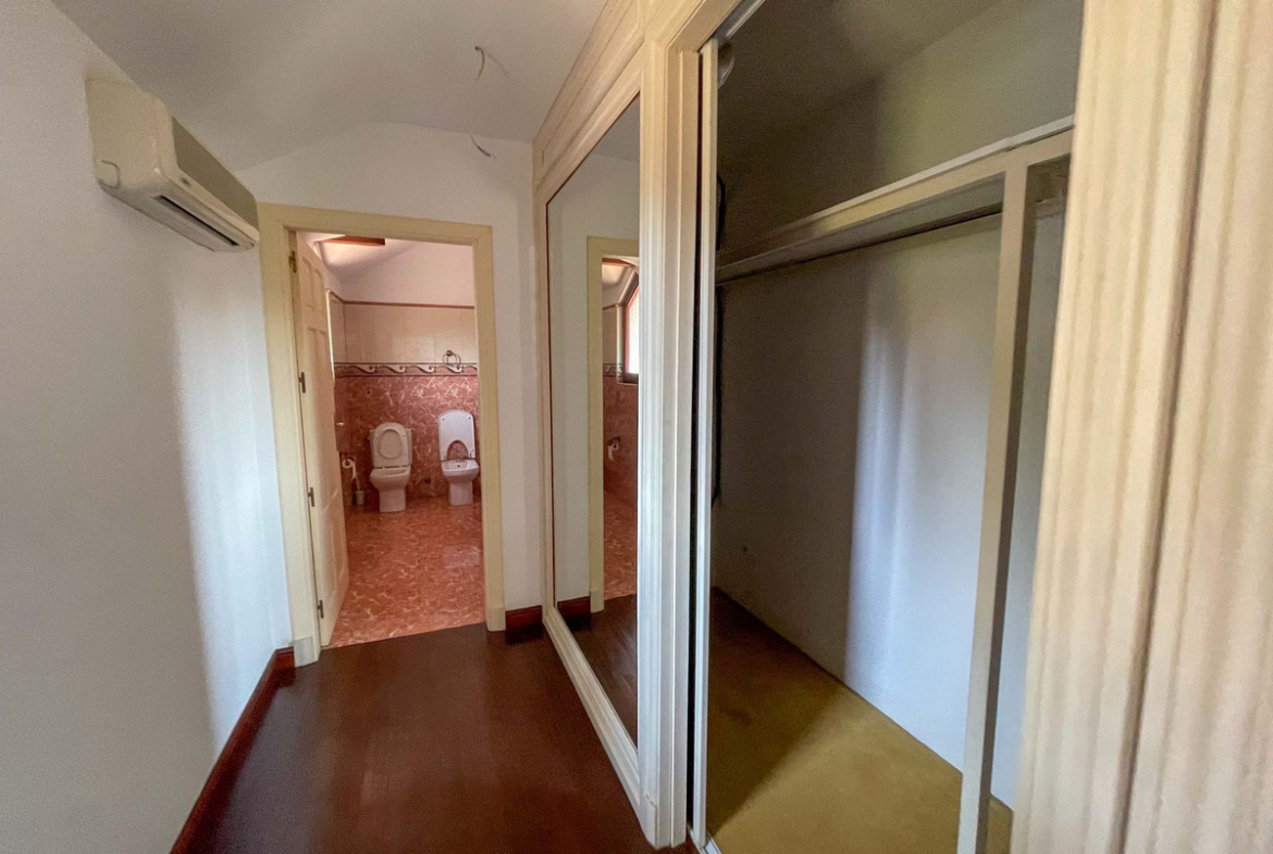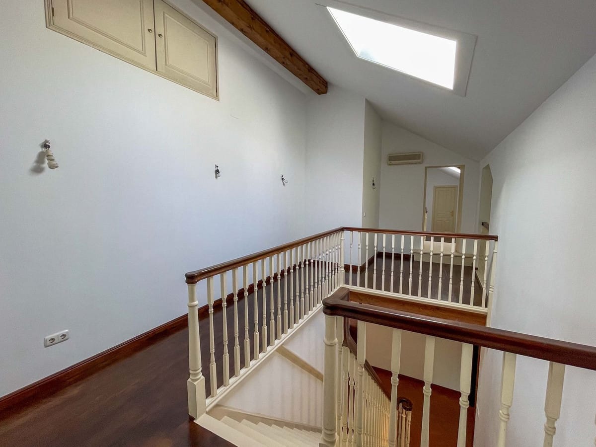 This traditional-style villa is located between Valderrama and the Almenara golf course, surrounded by mature woodlands and landscaped gardens. Spread over three floors, it features rustic elements such as wooden beams, a stone fireplace, and double-glazed windows. The property offers 6 bedrooms, 3 living rooms, two spacious kitchens, and access to balconies and gardens from the bedrooms. It also includes a separate pool house, barbecue area, pergola, and a wooden deck overlooking the pool.
