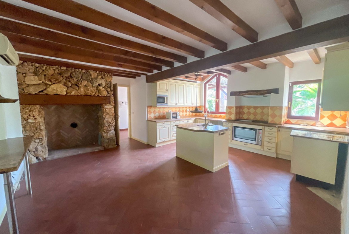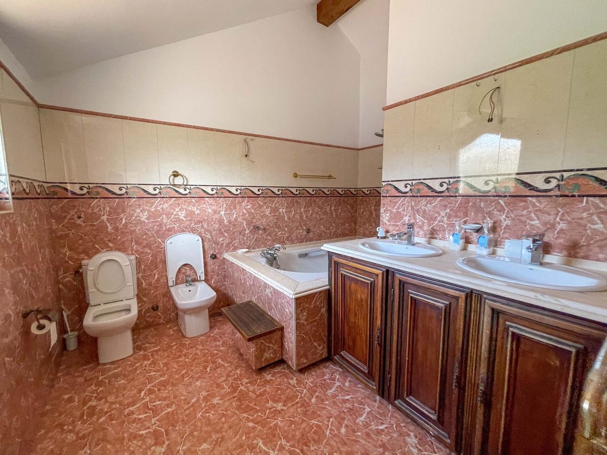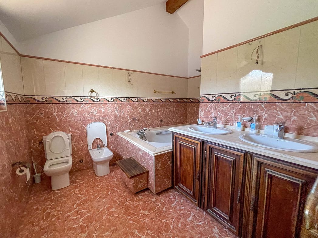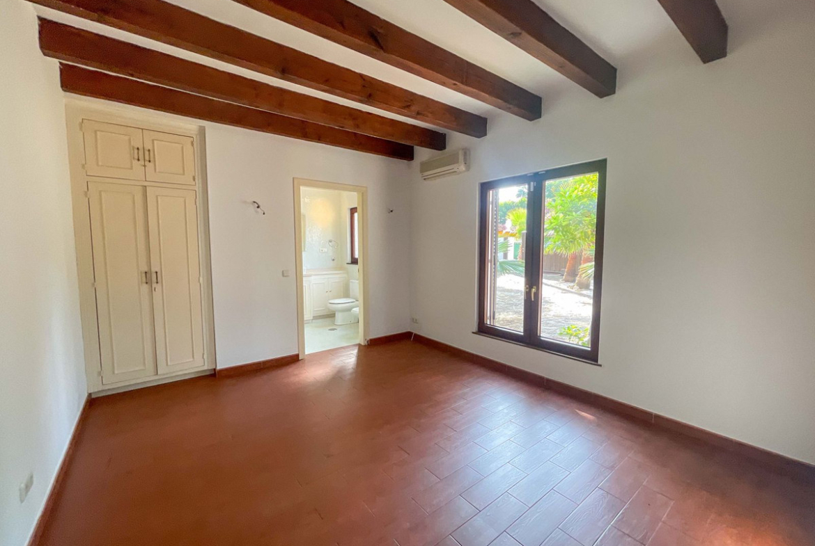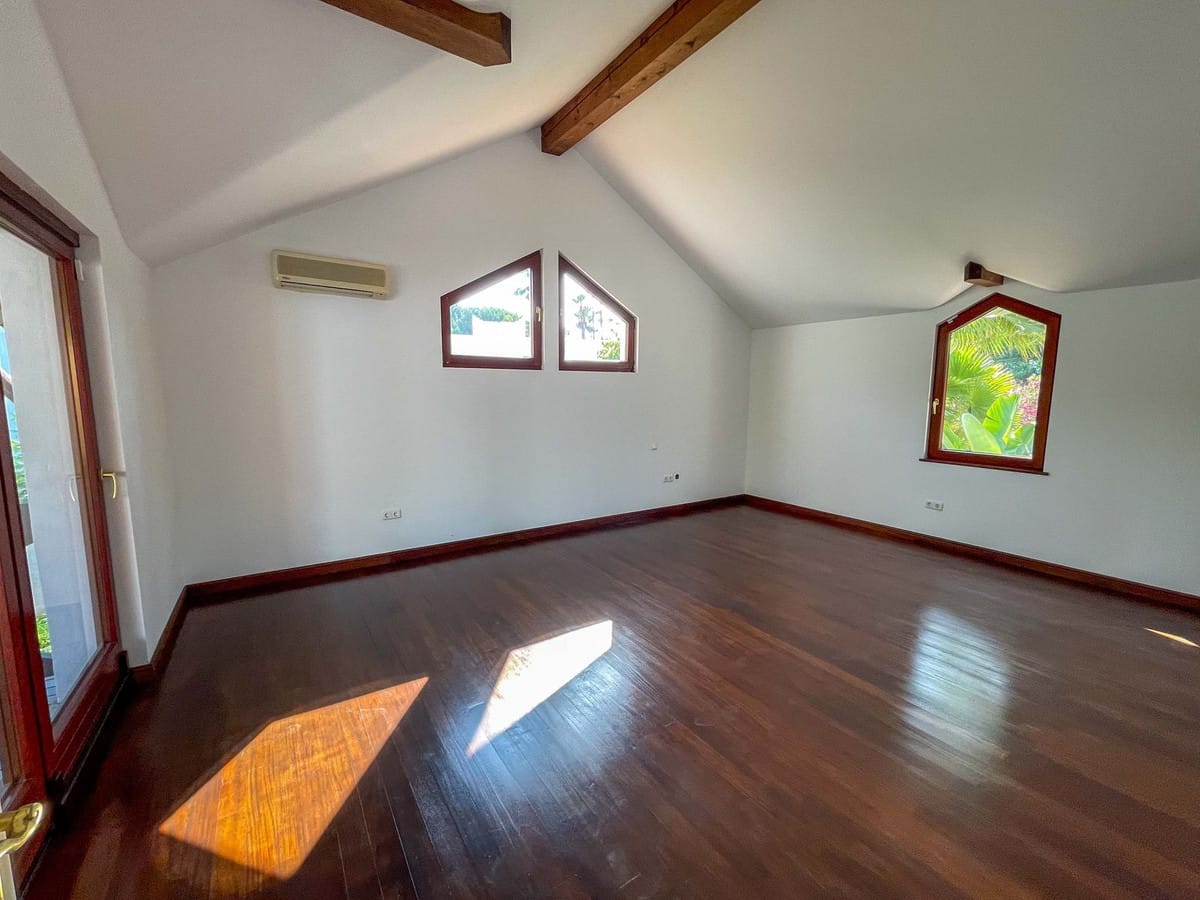 This traditional-style villa is located between Valderrama and the Almenara golf course, surrounded by mature woodlands and landscaped gardens. Spread over three floors, it features rustic elements such as wooden beams, a stone fireplace, and double-glazed windows. The property offers 6 bedrooms, 3 living rooms, two spacious kitchens, and access to balconies and gardens from the bedrooms. It also includes a separate pool house, barbecue area, pergola, and a wooden deck overlooking the pool.