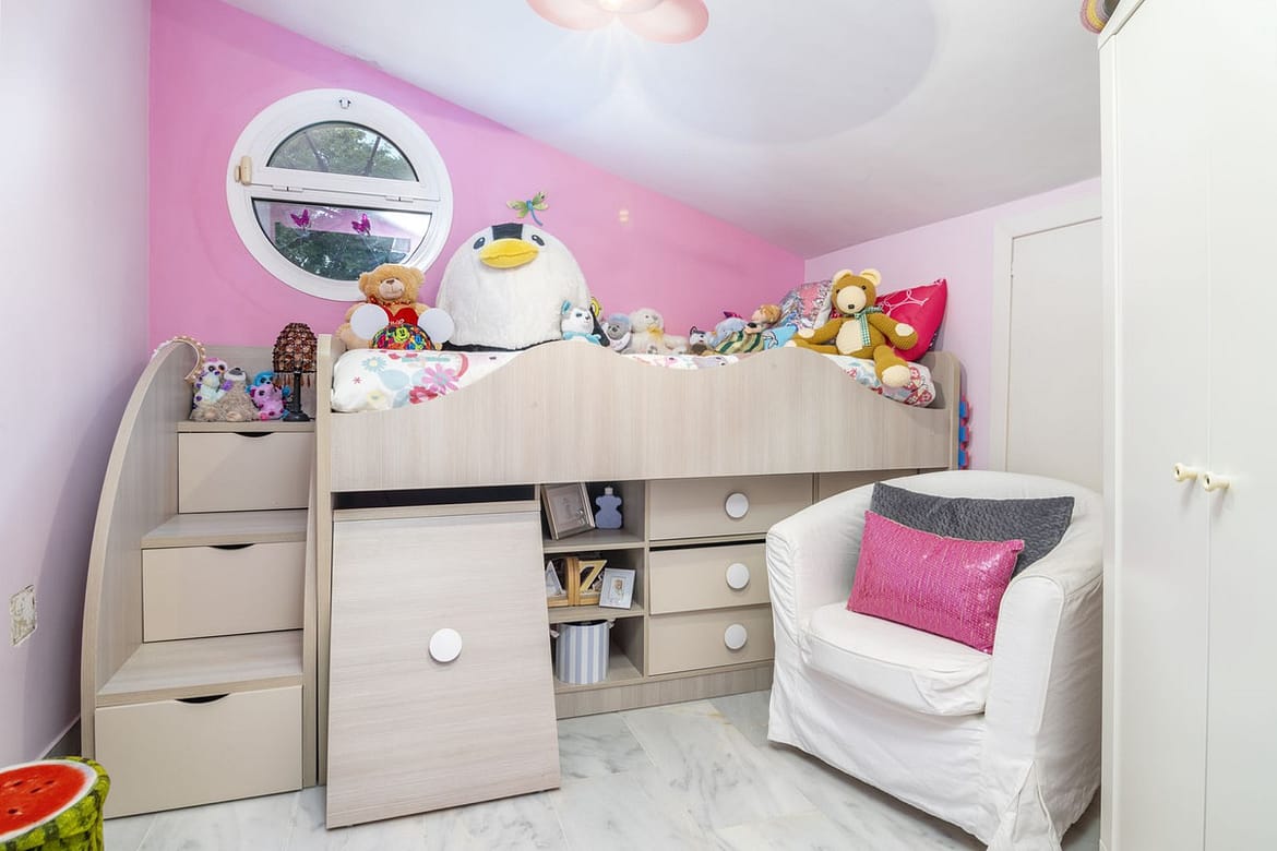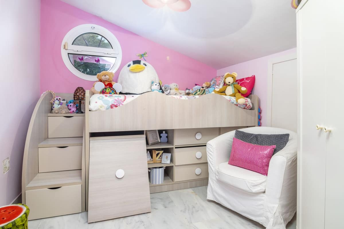 The upper floor houses the 3 bedrooms and 2 bathrooms. One of the bedrooms is a suite with a large walk-in closet and direct access to a spacious terrace, where you can enjoy the views and tranquility of this exclusive area.