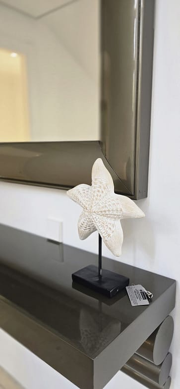 On the ground floor, the bright and airy living and dining area overlooks the gardens, communal swimming pool, and the sea. The kitchen is separate, tastefully redesigned with a beautiful breakfast island and high-end appliances. This level also includes a versatile bedroom or office, complete with its own en-suite bathroom.