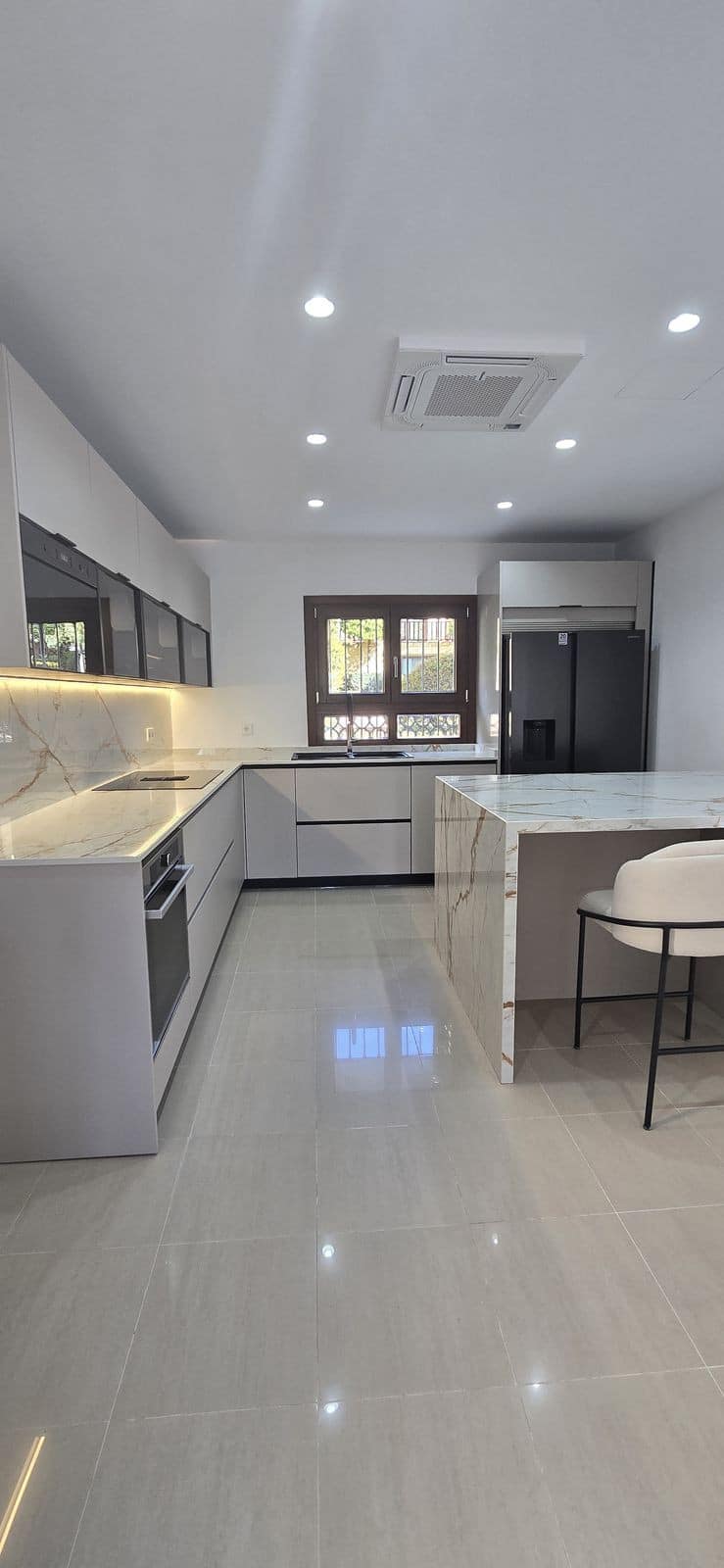 This beautifully renovated villa is located in the highly desirable gated community of La Capellania Hill Club, on the prestigious Golden Mile. Spanning nearly 500 sqm across three floors, all connected by an elevator, the villa boasts six en-suite bedrooms. The spacious living and dining areas offer stunning views of the lush gardens and the sea, while the large, fully renovated kitchen features a separate dining area.