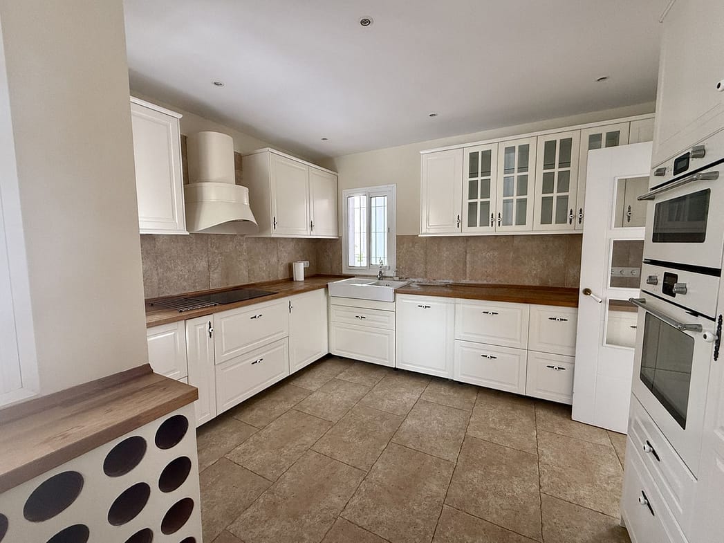 At entry level this incredible property comprises of hallway, very large lounge/dining room, modern fully fitted kitchen, double bedroom with ensuite bathroom and guest toilet. From patio doors in the lounge, a very large terrace wraps around the property, offering stunning sea and mountain views. Therefrom a staircase leads to the roof terrace. Downstairs, we find 3 further double bedrooms, one with ensuite bathroom plus a further bathroom. Currently used as an office, is the 5th bedroom, with a kitchen area, leading to another patio. This area could easily be made totally independant of the house, making a studio apartment. At garden level we find a beautiful swimming pool, abundant terraces and another independant area, currently lounge/bedroom, kitchen area and bathroom. There is also a double garage and driveway leading thereto. There are fitted wardrobes in all bedrooms, windows in all bathrooms and a brand new alarm system in the house.