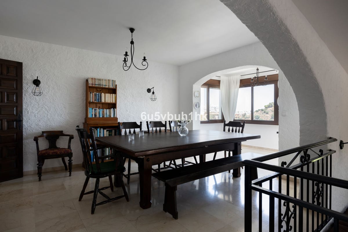 Situated in the heart of Torremuelle, one of Benalmádena’s most exclusive and tranquil residential enclaves, this exceptional Andalusian-style villa blends traditional charm with refined modern comfort. Offering 6 spacious bedrooms, 5 bathrooms, and an independent guest apartment, the home is surrounded by mature gardens, expansive terraces, and panoramic views over the Mediterranean coastline and surrounding hills. The villa welcomes you with classic Andalusian architecture and warm, open spaces designed for both relaxed living and elegant entertaining. Inside, you’ll find marfil marble floors that flow throughout the main level, enhancing the sense of luxury and natural light. The impressive open-plan living and dining room is framed by large picture windows and direct access to sunny terraces, ideal for enjoying the spectacular vistas and indoor-outdoor lifestyle. The layout includes long hallways, multiple storage rooms, and a thoughtful division of spaces, providing both functionality and comfort for family living. A standout feature of the property is the independent apartment on one of the upper terraces — complete with its own fully equipped kitchen, laundry room, and living area. This private guest suite is perfect for extended family, visitors, or as a separate rental opportunity. Outdoors, enjoy beautifully maintained Mediterranean gardens, a private swimming pool, and several large terraces ideal for al fresco dining, sunbathing, or entertaining under the stars. The villa sits on a quiet residential street, just a short walk to key amenities. Boasting panoramic sea and mountain views, this spacious property combines classic Mediterranean charm with modern comfort, perfect for families or as a luxury holiday retreat. Prime Location: 2 minutes to Torremuelle train station (direct access to Málaga city, airport, and Fuengirola) 5 minutes from the beach and seafront promenade 2 minutes to The British School of Benalmádena Close to Torremuelle Racket Center (tennis & padel) Scenic walking routes, cafés, shops, and restaurants all within walking distance Located on a peaceful and upscale street in a highly desirable residential area Property Summary: 6 Bedrooms | 5 Bathrooms Independent Guest Apartment with Kitchen & Laundry Large Open-Plan Living/Dining Area with Sea Views Elegant Marfil Marble Flooring Throughout Main Living Areas Long Hallways and Ample Storage Private Swimming Pool Extensive Gardens and Panoramic Terraces 2 Private Parking Spaces Authentic Andalusian Style with Modern Comfort This villa offers a perfect combination of timeless style, space, privacy, and unbeatable proximity to all essentials. Whether you are looking for a full-time residence, second home, or premium rental property, this is an exceptional opportunity in one of the most coveted corners of the Costa del Sol.