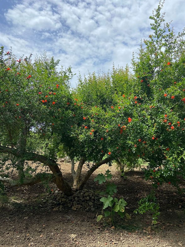 • Natural spring feeding a 42 m² water reservoir, used to irrigate the gardens