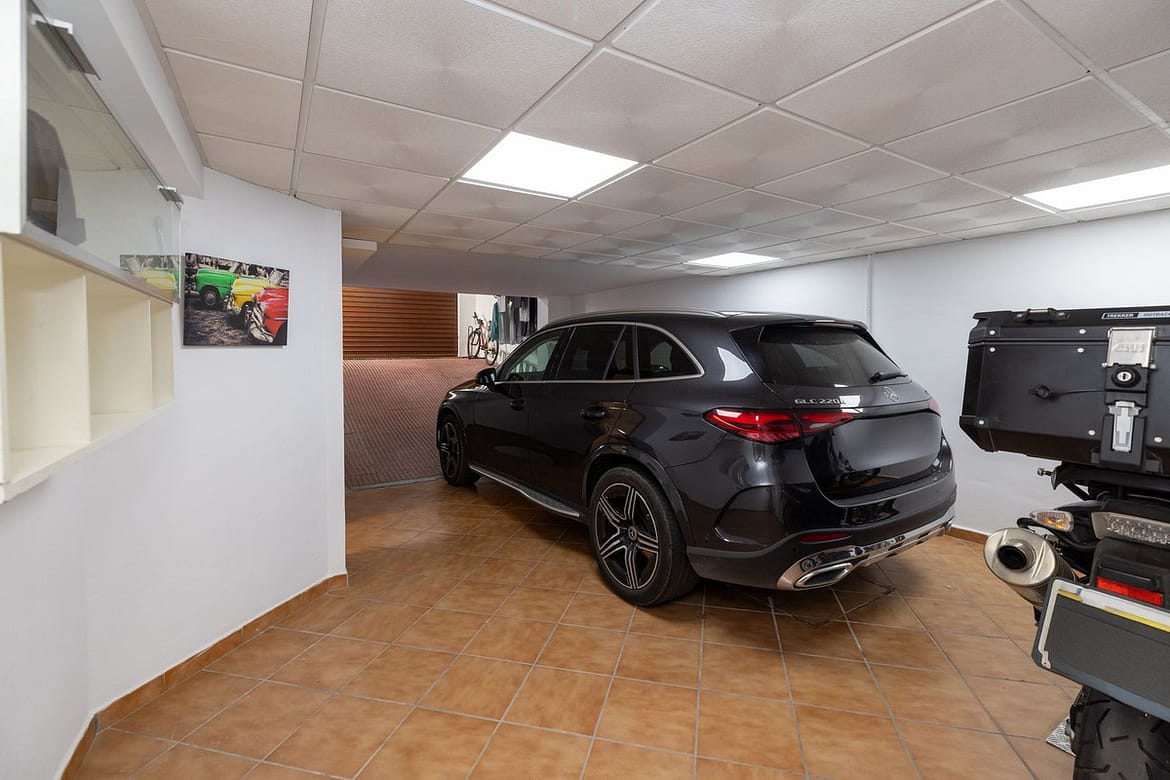 The layout of this villa, spread across three floors, has been intelligently designed to make the most of every square meter. In the basement, you’ll find a large garage with capacity for two cars and a motorcycle, as well as a practical storage room. This level also features two studio apartments, each equipped with a kitchen and bathroom, which are currently rented out—offering an excellent investment opportunity.