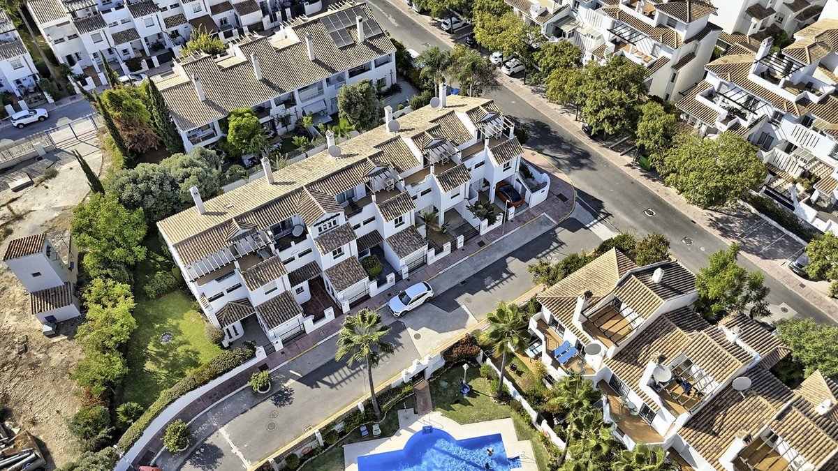 The property is just a five-minute drive or a 25-minute walk from the famous Puerto Banús marina and only a few minutes by car from Marbella’s Old Town. Everyday amenities are close at hand, with a Mercadona supermarket within the community and a bus stop just a minute away.