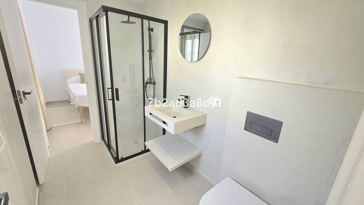 Set on an elevated plot, the villa is accessed from the front entrance on the first level of the house. Upon entering, you are greeted by a bright hallway with a fully fitted wardrobe. To the left is a spacious and light-filled master bedroom with en-suite bathroom, while to the right you’ll find another guest bedroom en-suite and a large guest suite.