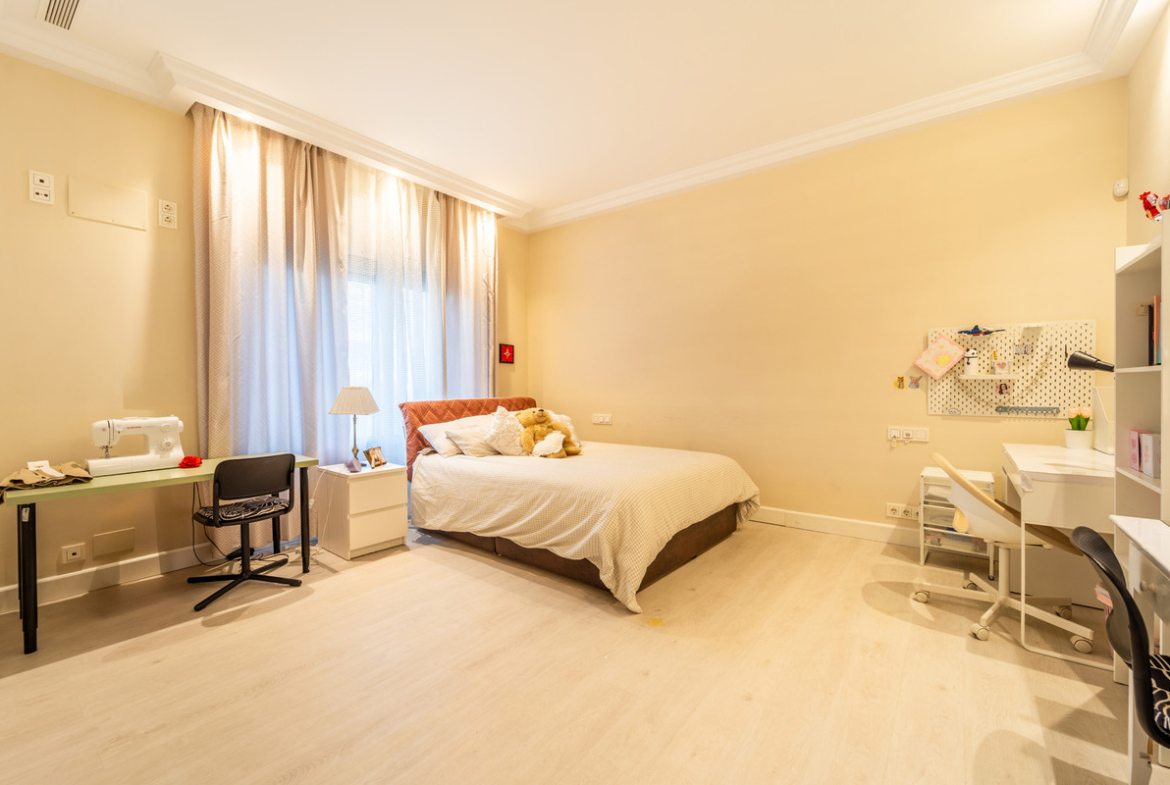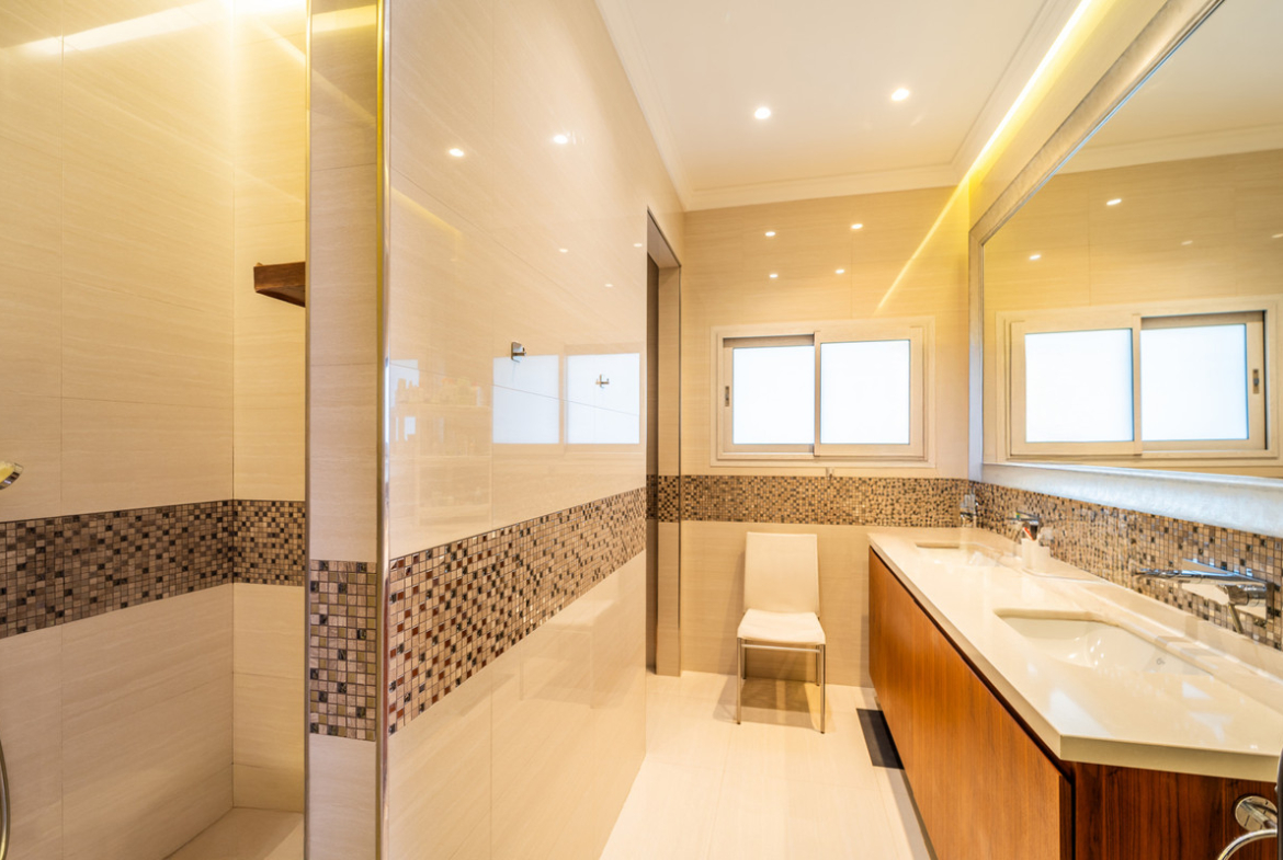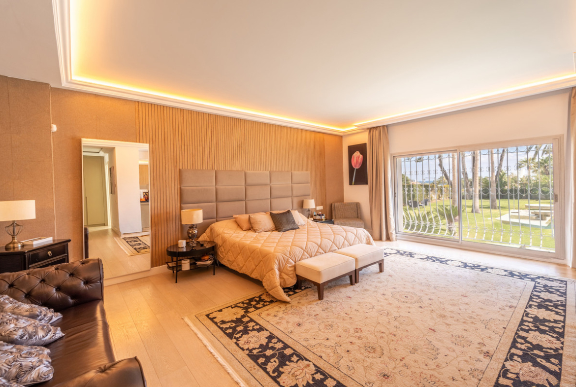The villa comprises seven spacious bedrooms, 3 en-suite bathroom, ensuring privacy and convenience for all residents and guests. , there are two dedicated staff rooms, providing ample accommodation for household personnel. The property is further enhanced by a private garage, a beautifully landscaped private garden, and a stunning private pool, complemented by an indoor heated pool and a luxurious Jacuzzi. Wellness facilities include a sauna.