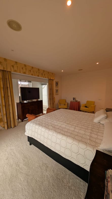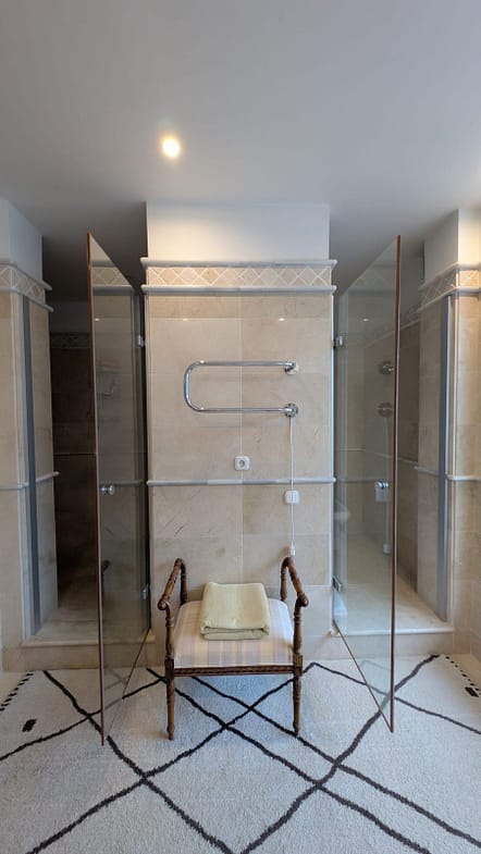 The villa features seven generous en-suite bedrooms. Those located on the lower level benefit from direct access to the gardens and swimming pool, offering a true Mediterranean resort-style experience.