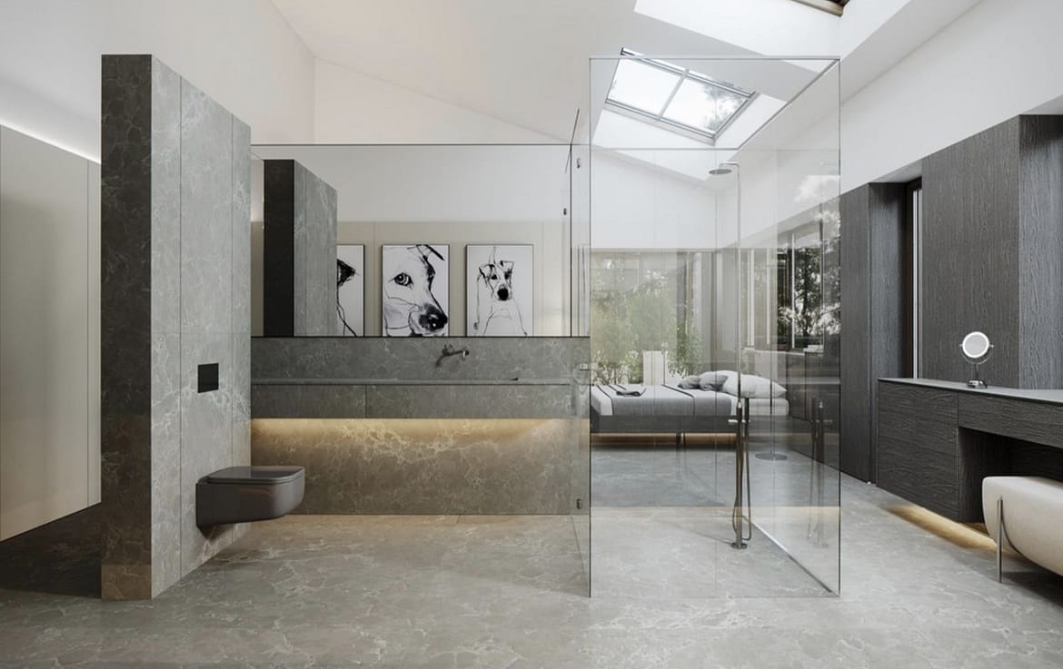 – Bathroom walls with COVERLAM plates (GRESPANIA) 2700X1200 (Color to choose)