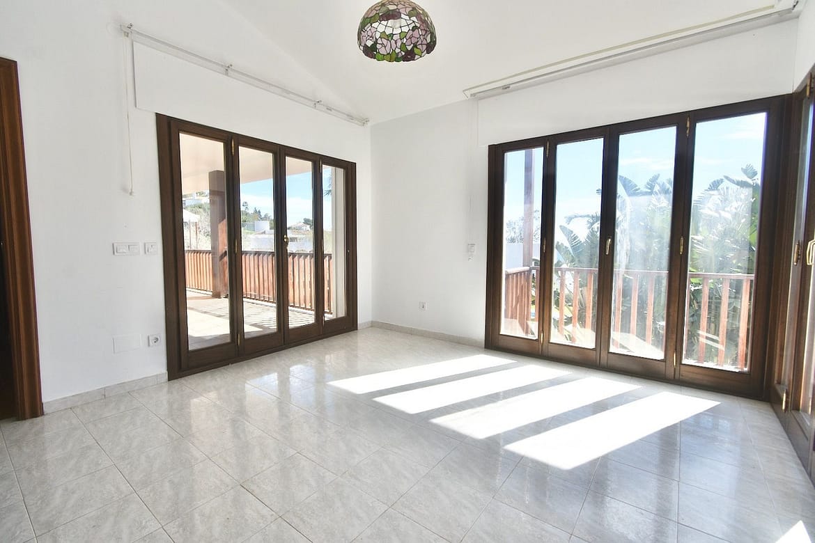 The villa stands out for its brightness, orientation, and unobstructed views of the Mediterranean from various rooms.