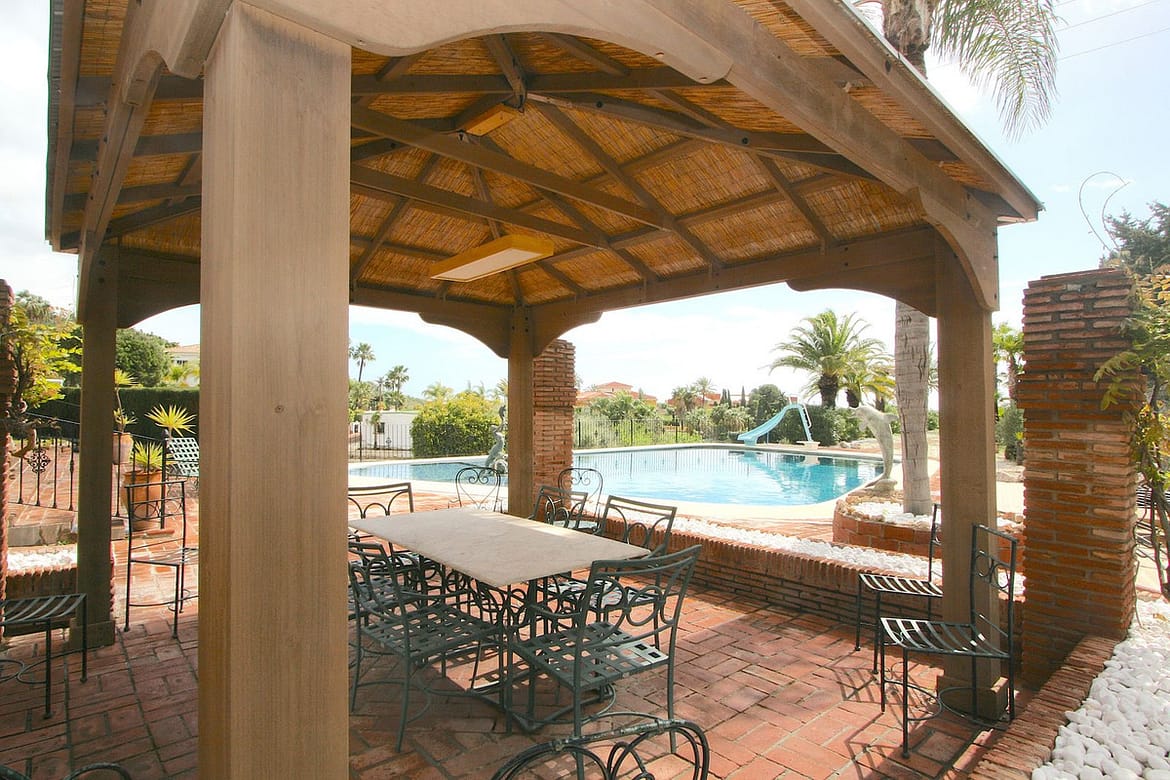 As you enter the gated property you will immediately sense the spaciousness in and around the villa. There is a driveway towards the garage on the left and a carport for about six cars on the right.