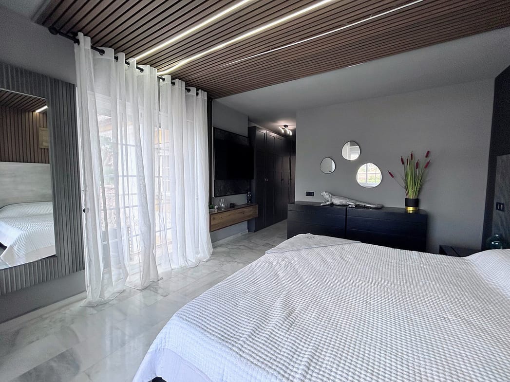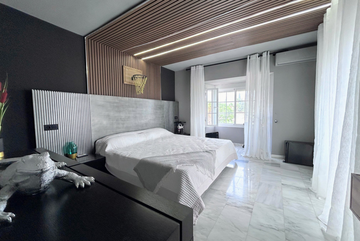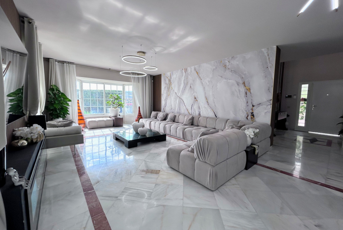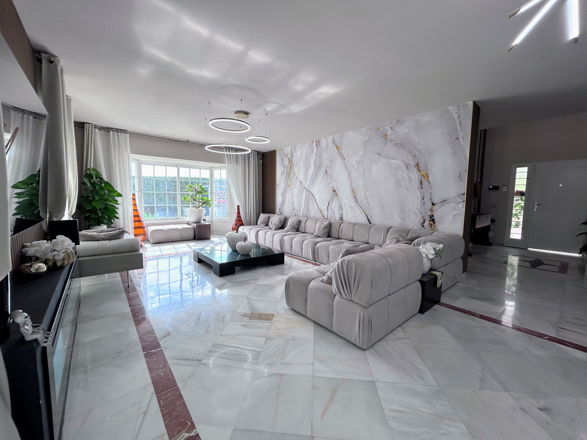 This bright and spacious villa is located in the quiet residential area of Guadalmina Alta, just 5 minutes from the beach and 8 minutes from the lively Puerto Banús. Securely gated, the property sits on a generous 1,400 m² plot with 623 m² built, offering a stylish and comfortable living environment.