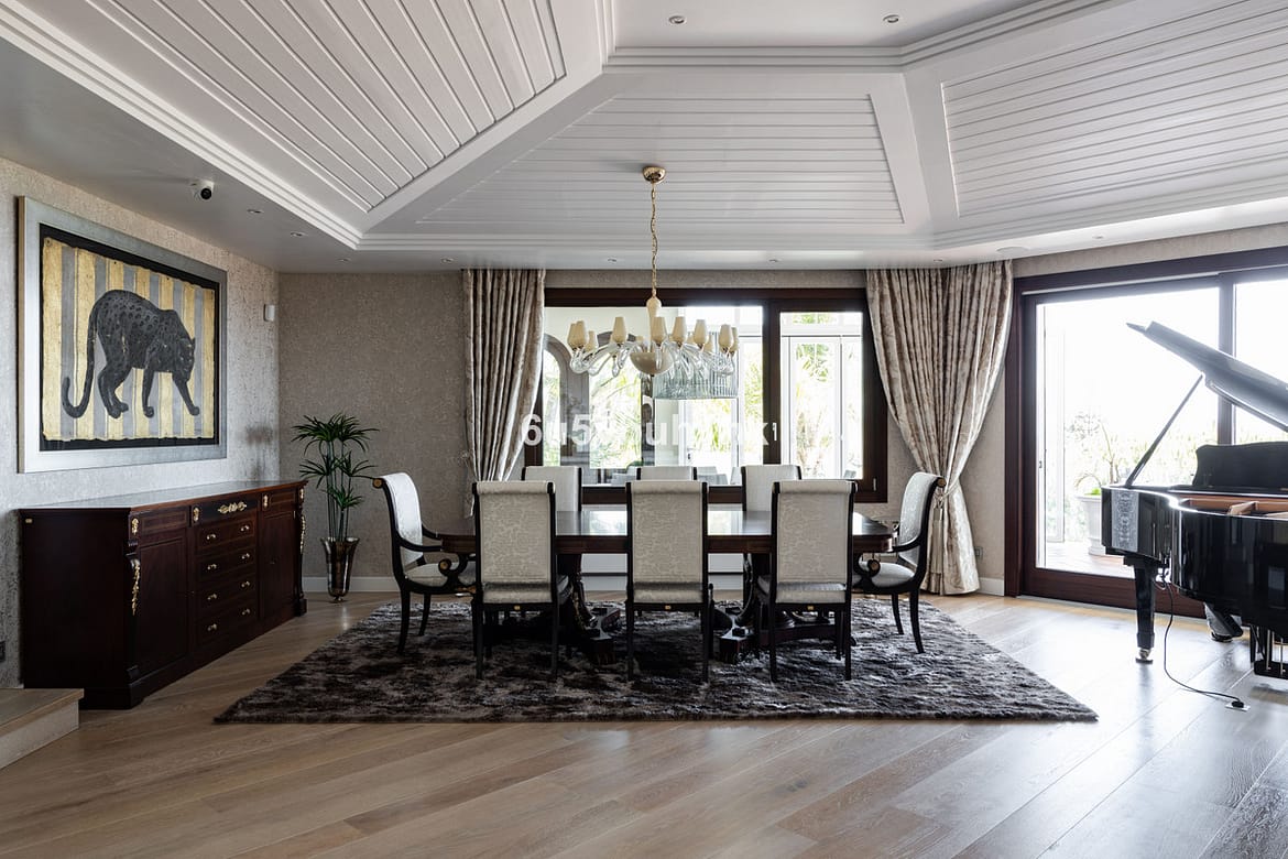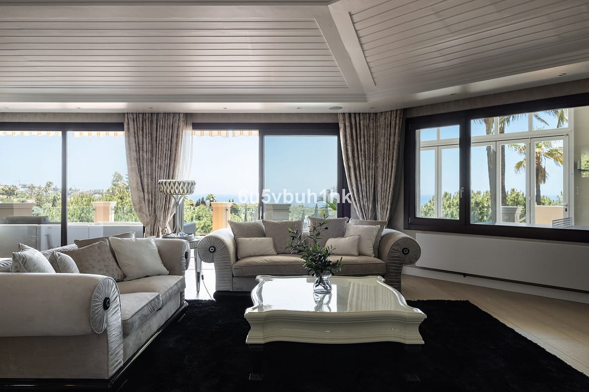 Nestled on a spacious 3,920 square meter plot, this generational Estate boasts a total built area of 842 square meters, spread across four floors with an elevator, located in one of Marbella's prime urbanizations. Surrounded by the lush nature of Las Chapas and high-end properties, the villa's classic Mediterranean architecture is enriched with modern, luxurious elements, offering breathtaking views of the Mediterranean Sea. Originally built in 1994, the villa underwent an elegant makeover in 2018 by its current owners, seamlessly blending its traditional charm with contemporary sophistication. Upon entering, you are immediately greeted by stunning sea views visible from every part of the house. The main level is designed for comfort and entertainment, featuring a spacious living room, dining area, family kitchen with heated floors, and a cozy relaxation room. Each space flows naturally into the next, perfect for hosting gatherings or enjoying quiet family time. Ascending to the upper floor, you'll find the master bedroom with a large bathroom and an office. The expansive balcony on this level provides the best views of the coast and surrounding greenery. The ground floor includes four additional bedrooms, each with direct access to the landscaped garden and the inviting, heated pool. Adjacent to the pool, a Finnish sauna provides a perfect spot for relaxation. This floor also includes a massive gym with its large mural depicting Lake Inari in Lapland, and a large garage for convenience. Descending to the basement, the villa impresses with a home theater, massage room, both a traditional sauna and an infrared sauna, and an additional bedroom with its own bathroom. The villa is equipped with advanced technology to enhance comfort and efficiency. Solar panels heat the water and produce electricity. A domotics system manages the pool, air conditioning equipment, outside lighting, and regulates the temperature inside the house. Additionally, there are heated floors in the bathrooms and kitchen. Security is paramount, with an alarm system and security cameras. The south-facing garden is a paradise with walking paths, a large play area, workout spaces, and a padel court. Situated in Hacienda Las Chapas, the most elegant villa district in eastern Marbella, this property offers 24-hour security. Its prime location is only a 30-minute drive from Malaga Airport and just 10 minutes from Marbella's city center. THE DOOR IS WIDE OPEN – ARE YOU READY TO WALK THROUGH IT? REACH OUT TODAY!