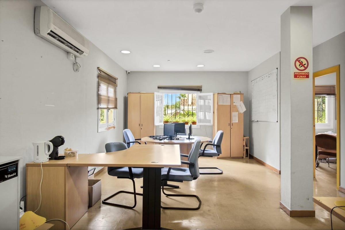 The property is located in the centre of Marbella, on Av Jose María Gironella, Huerta Belón…It is an independent building of 821 sqm on a plot of 1,110 sqm. Built on 1975, the property principal use at present is commercial, in fact it has been the offices of an important multinational security company for the last 30 years. Most important is that both residential and “dotacional” (for sport, health, religious, social activities) uses are compatible, allowed there…The property needs a deep refurbishment and adaptation to the new use, we estimate a capital expenditure close to 1 million. In our opinion it would be a high ROI investment if it was transformed into a student residence or temporary-mid term rentals, there is a very high local demand prices have rocketed. There are more options in any case, the plot can be divided in two, and two villas could be built there.
