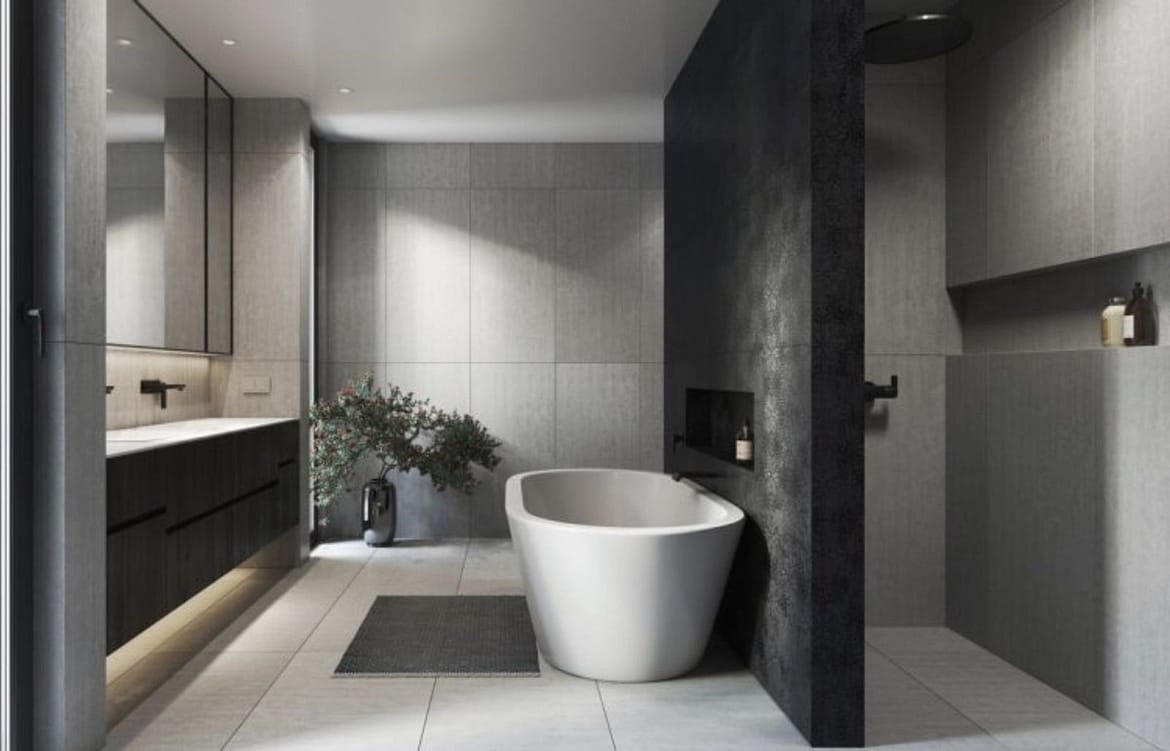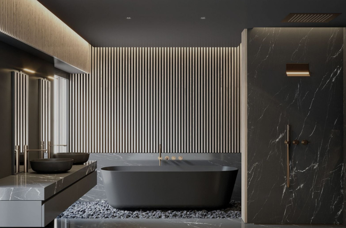 – Bathroom walls with COVERLAM plates (GRESPANIA) 2700X1200 (Color to choose)