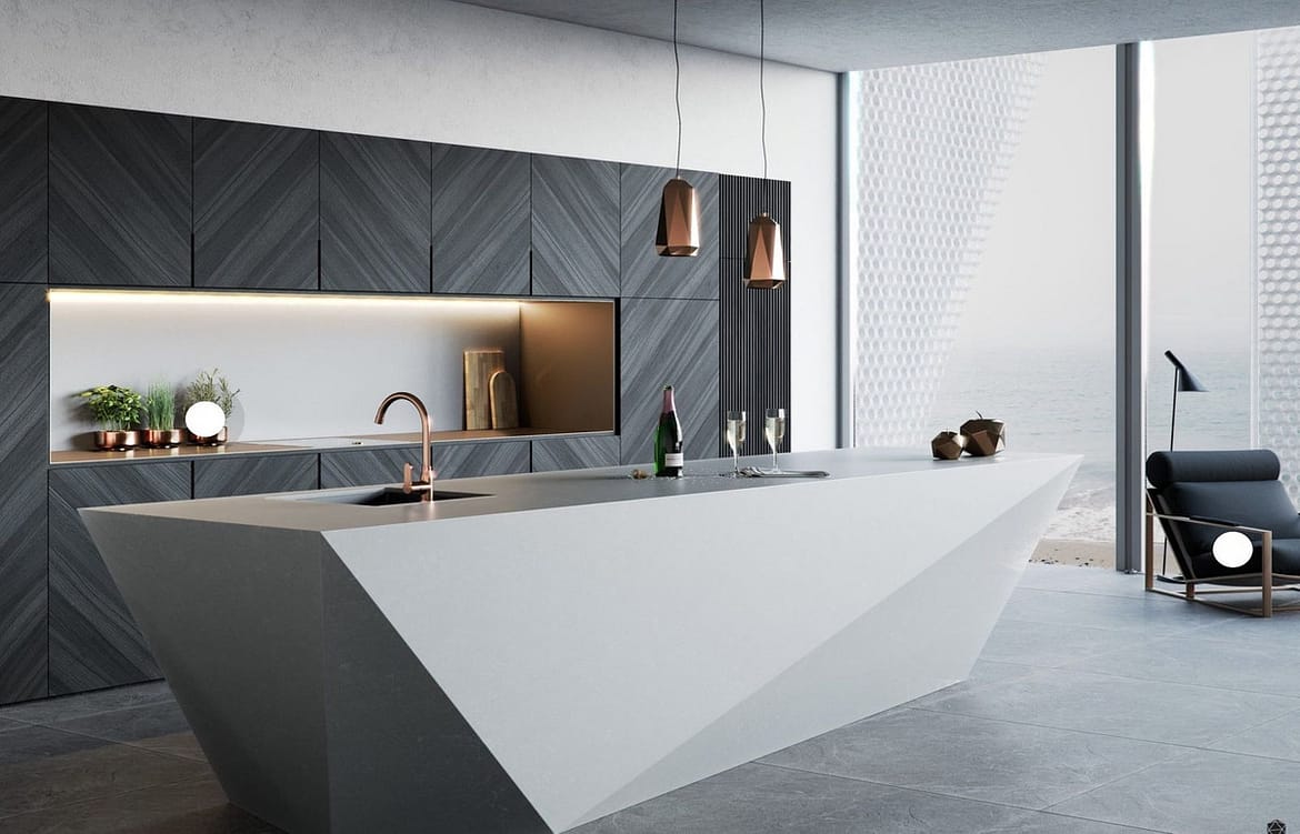 – Island with COVERLAM 3600X1600 no visible joints (Color to choose)