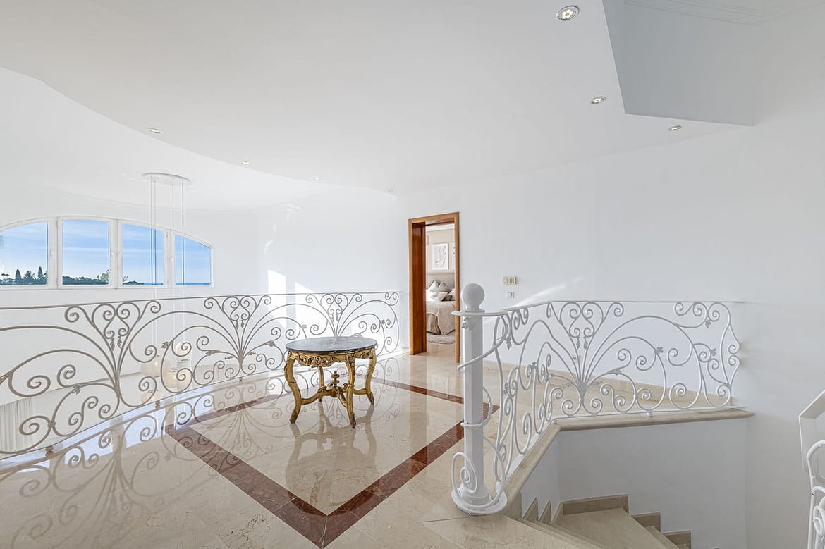 This magnificent villa located in the heart of the prestigious Golf Valley of Nueva Andalucia! This impressive property boasts of an expansive 1.425m2 of plot size and located first line golf. Entering the property, a huge driveway welcomes you to the well-maintained expansive garden area. This recently reformed villa has is divided into 4 floors plus attic, 7 bedrooms, 7 bathrooms, gust toilet, several living rooms and lounge areas, terraces and entertainment area. Upon entering this stunning villa, you will be greeted by a bright hallway with a high ceiling and access to the different areas of the main floor. To the right is a bedroom with ensuite bathroom which could also be an private office.On the left part, you will find a charming independent kitchen fully equipped with high quality appliances. Also, on the main floor you will find the dining area, a separate lounge area and a very chic sitting area with direct access to the terrace. Enjoy the best golf views on the large terrace with different spaces to have your meals or just relax and enjoy the sun and the fantastic views. Going up on the second floor, you will find two grand master bedrooms both with ensuite bathrooms (with bath and shower), both with access to the bright terrace. On the upper floor, you will find a spacious studio which could be used as an office, art studio, another bedroom etc. Going down to the lower floor, you will find, a spacious entertainment room with a cinema, bar, game area; 3 complete bedrooms and 3 bathrooms, a spacious living area-dining room and an open kitchen. We go out to the sunny porch area that leads out to the lush gardens with a beautiful swimming pool. On the lower floor, you will find a very spacious garage for 5-6 cars and a fully equipped gym area. This modern house is equipped with a lift in all floors, individual air-condition hot and cold, fireplace, underfloor heating, alarm system, electric blinds. This classic-style home is built with the best quality materials and modernized elegantly creating a luxurious home in one of the most exclusive areas of Marbella! Surrounded by the best golf courses such as Los Naranjos Golf, Magna Marbella, Las Brisas. Just a few minutes’ drive to the beach and Puerto Banus!