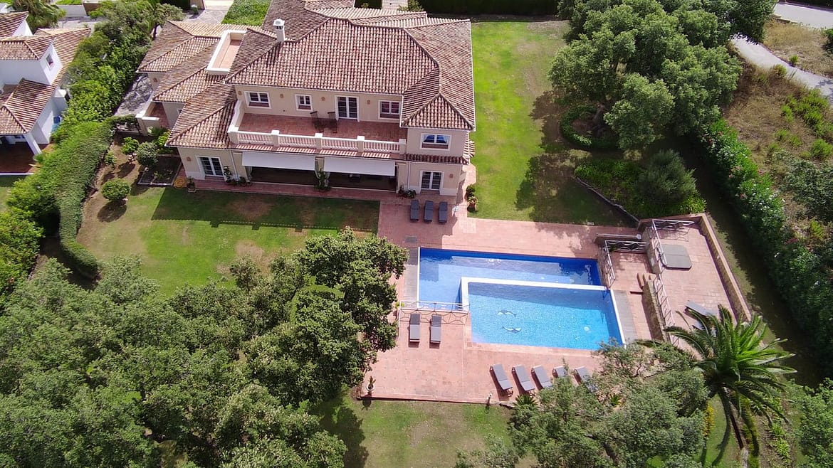 San Roque Golf : Stunning villa located in the prestigious San Roque Club. Located on the first hole of the "Old Course" with beautiful views over the "New course" towards the sea. Built in 1999 but completely upgraded in 2005. One of the many high end features is the swimming pool complex with cascading falls and jacuzzi. Beautiful entrance hall leading to a large sunken lounge, seperate family room make this the perfect villa.