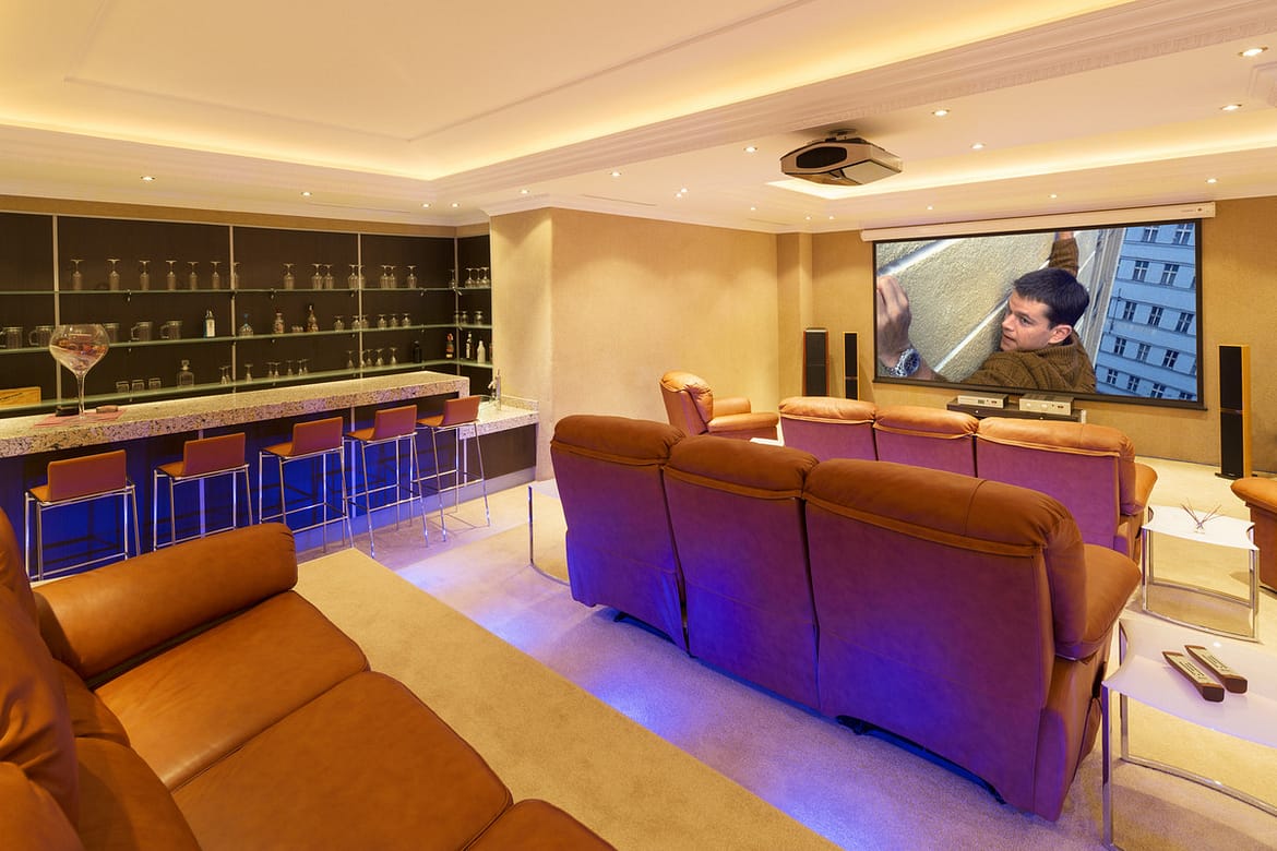 • cinema and bar entertainment area with 9 Italian leather recliner armchairs