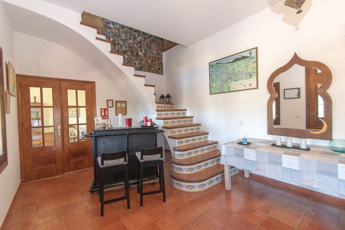 The main house is distributed on 2 floors: Covered terrace overlooking the pool and garden, entrance to the reception area, fully equipped kitchen, separate laundry room, guest toilet, double bedroom, and the master bedroom with on suite bathroom.