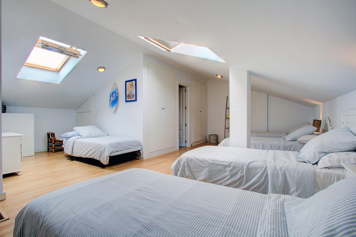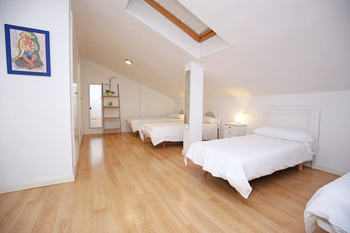 Casa Murillo sleeps up to eighteen guests with two twin bedrooms and one bathroom on the ground floor, with the addition of a guest cloakroom. On the first floor there are four very spacious and beautifully decorated ensuite double bedrooms. On the top level there is a huge, airy bedroom with 5 single beds and bathroom. On the lower ground there is one further bedroom with twin beds and an ensuite bathroom. The property has been lovingly decorated by its Spanish owners and furnished with plenty of space and amenities for all to use. Cotton sheets and towels are provided, a maid service (optional extra) and much more. The accommodation is very well equipped and offers many facilities.