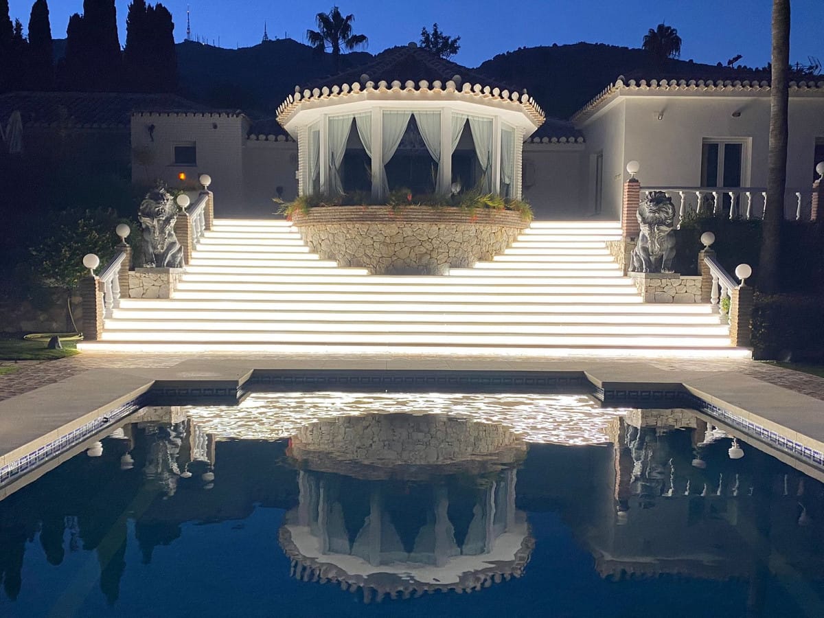 One Level Villa by world-famous architect Frank Lloyd Wright *. Ideal as a family home for her, him and the children. The villa offers an incredible quality of life, plus a range of leisure, hobbies and sports all under one roof. Excellent location in a quiet residential area on a plot of 4500 m² in Rancho Domingo, Benalmadena.