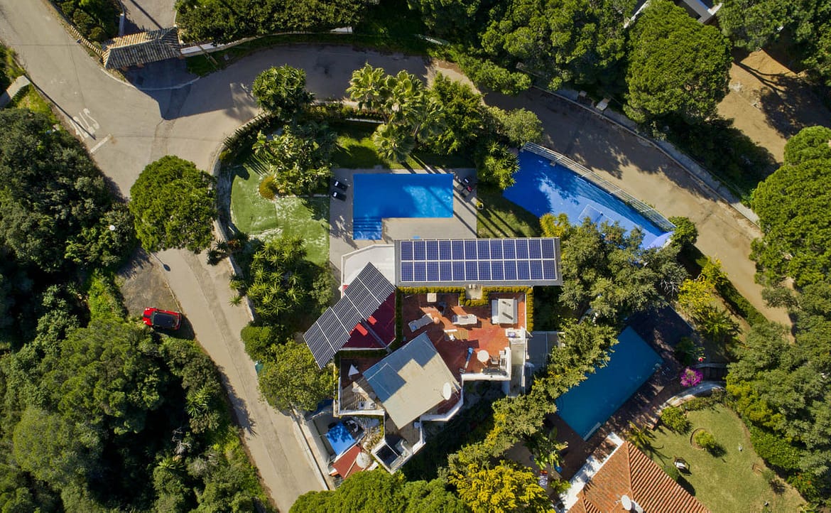 Nestled in lush green surroundings and just a short walk from Elviria's amenities, this unique villa is an ideal opportunity for both living and business. The property includes a main house, a studio apartment with its own entrance, and an annex with two additional bedrooms, making it perfect for a large family or a Bed & Breakfast with a capacity to accomodate up to 26 guests. With a total of 8 bedrooms and 9 bathrooms, each bedroom suite is equipped with a minibar for added convenience.