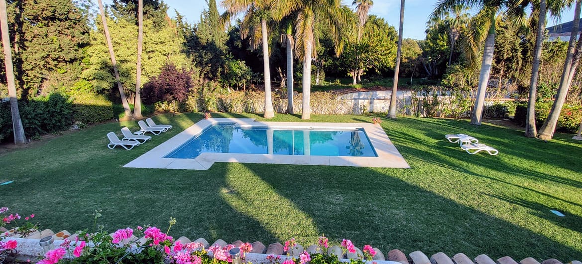 Situated on a tranquil street within the Guadalmina Baja urbanization, this mansion offers an unparalleled lifestyle. Very near the beach and surrounded by amenities, including two 18-hole golf courses, 4-star hotels, a Bilingual School, and a shopping center with various services, it epitomizes luxury living. Merely 4.9 km from Puerto Banús, the residence occupies a generous plot of 3,853 square meters, with a substantial portion dedicated to private parking, accommodating up to 20 cars. The driveway, spanning 965 square meters, boasts surface drainage for optimal functionality.