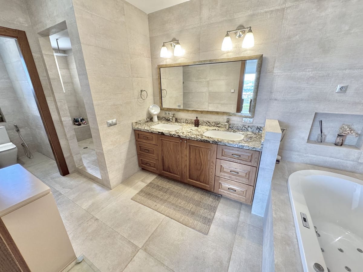 The lower floor is dedicated to entertainment and relaxation, boasting two more double bedrooms, a full bathroom, additional guest WC, storage and technical rooms, and a truly impressive games/cinema room with a bar and private bathroom.