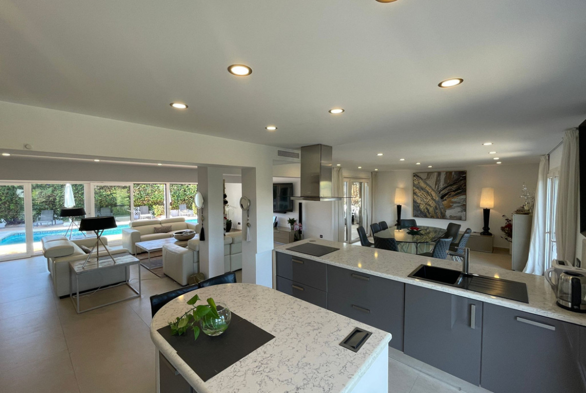 San Pedro beach side Villa , totally refurbished villa on two floors with 7bedrooms ,7bathrooms all ensuite . Ground floor consists of 5 double bedrooms all ensuite, spacious salon, dining room and Miele kitchen. First Floor consists of 2 double bedrooms ensuite with large open plan dual aspect lounge, dining room and designer Kitchen with top range Neff equipment.