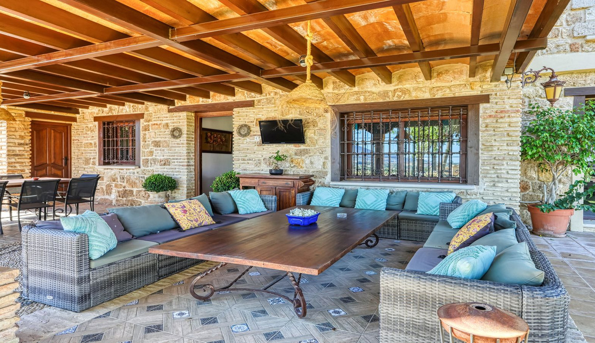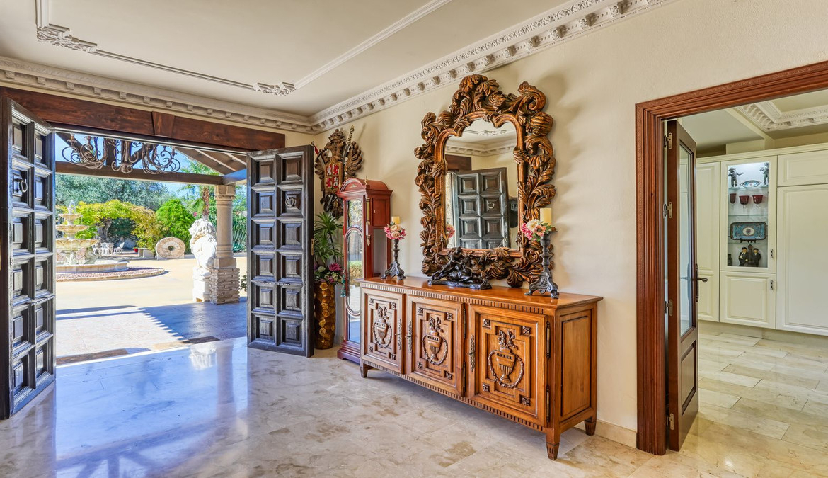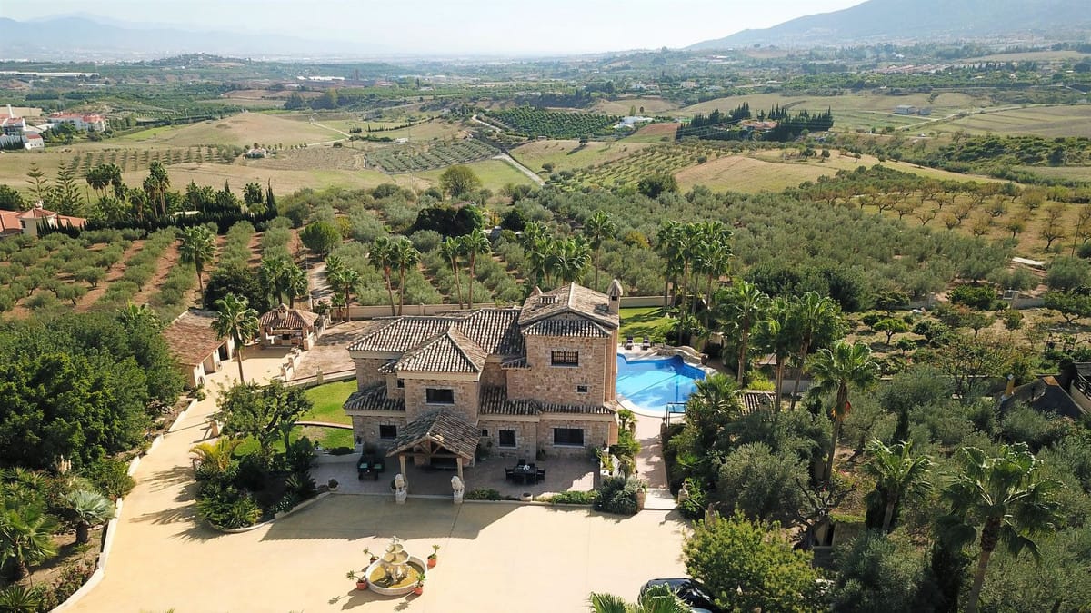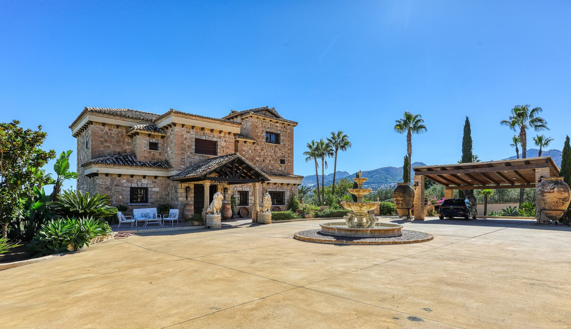Discover this one-of-a-kind luxurious country estate —a perfect blend of modern elegance and rustic charm, situated just 20 minutes from Málaga Airport and near the lively town of Alhaurín de la Torre. The commanding mansion is beautifully encased in local stone, carefully reclaimed and restored, which imbues the property with unique character and charm. Standout features include the main hall’s stately stone fireplace and a hand-carved coat of arms, all framed by impressive outer columns imported from India.