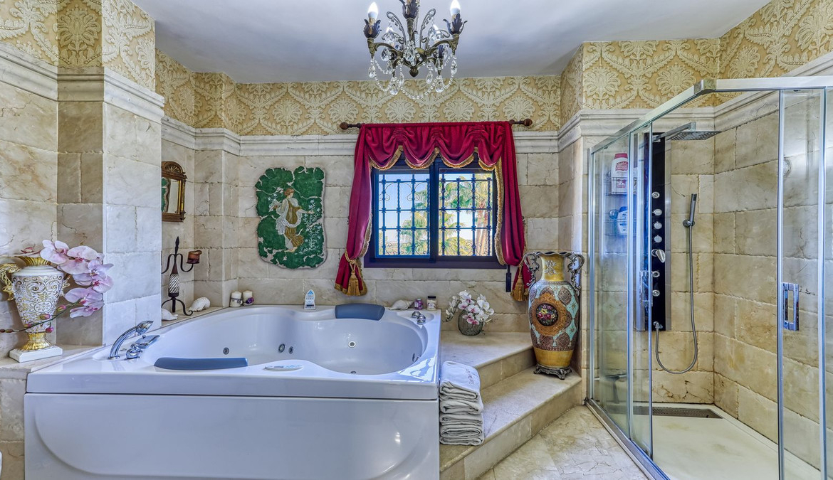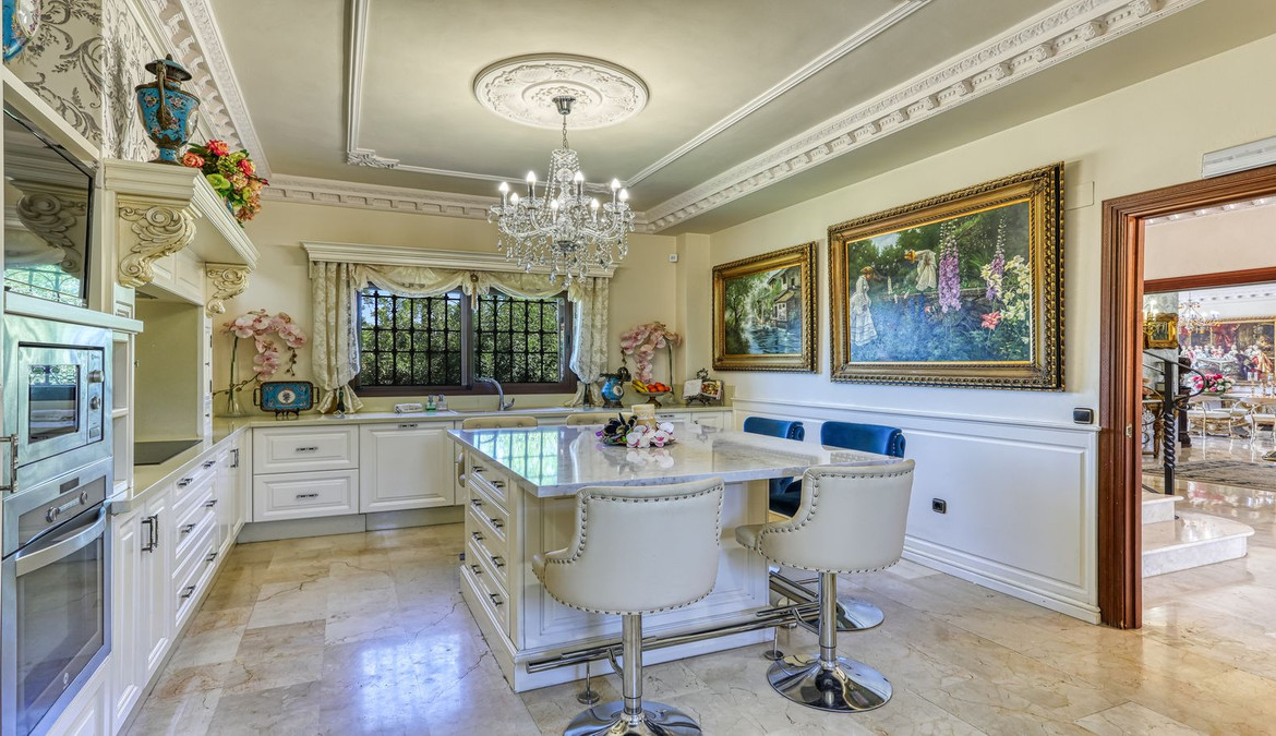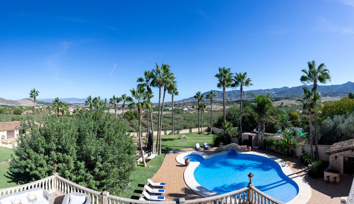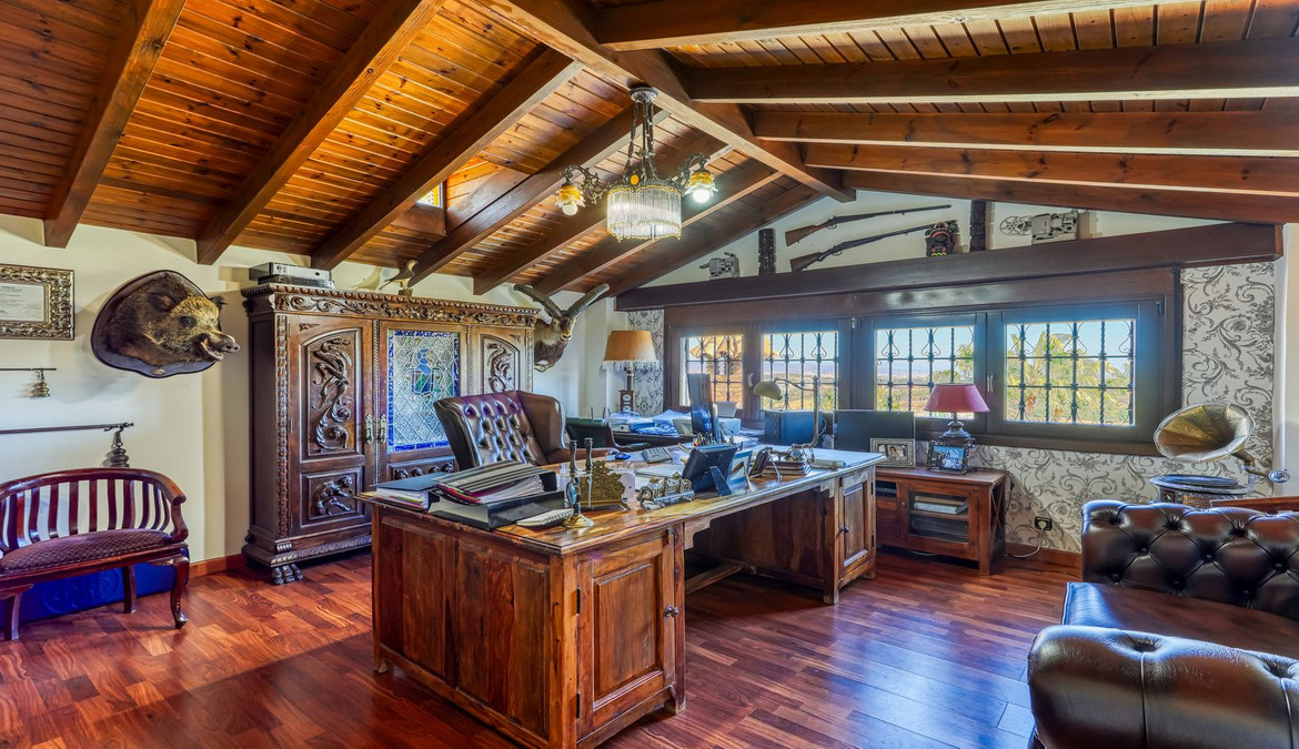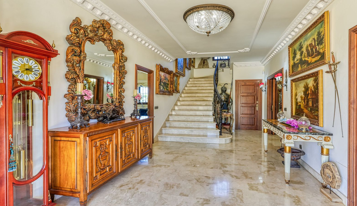 Discover this one-of-a-kind luxurious country estate —a perfect blend of modern elegance and rustic charm, situated just 20 minutes from Málaga Airport and near the lively town of Alhaurín de la Torre. The commanding mansion is beautifully encased in local stone, carefully reclaimed and restored, which imbues the property with unique character and charm. Standout features include the main hall’s stately stone fireplace and a hand-carved coat of arms, all framed by impressive outer columns imported from India.
