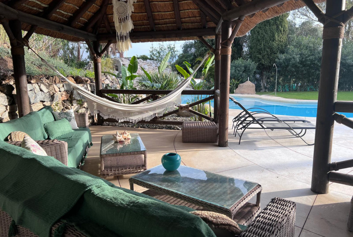 The main villa features five spacious bedrooms on the upper floor, while a separate guest house on the same grounds offers two additional guest bedrooms, providing approximately 20 sleeping spots in total. This makes the property ideal for hosting events, anniversaries, or special gatherings in a stunning and private setting.
