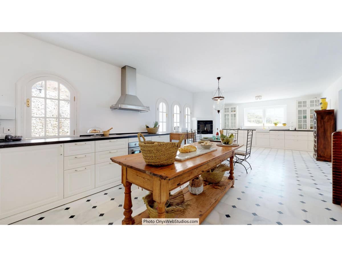 The Plot is 6092 sqm with mature garden. Impressive entrance driveway from street is leading to the villa. Villa at approx. 1.135 sqm with entrance hall leading to a large lounge with high ceilings and a fireplace, dining area and 3 doors out to the partly covered terrace with beautiful sea views and an infinity pool with heating.