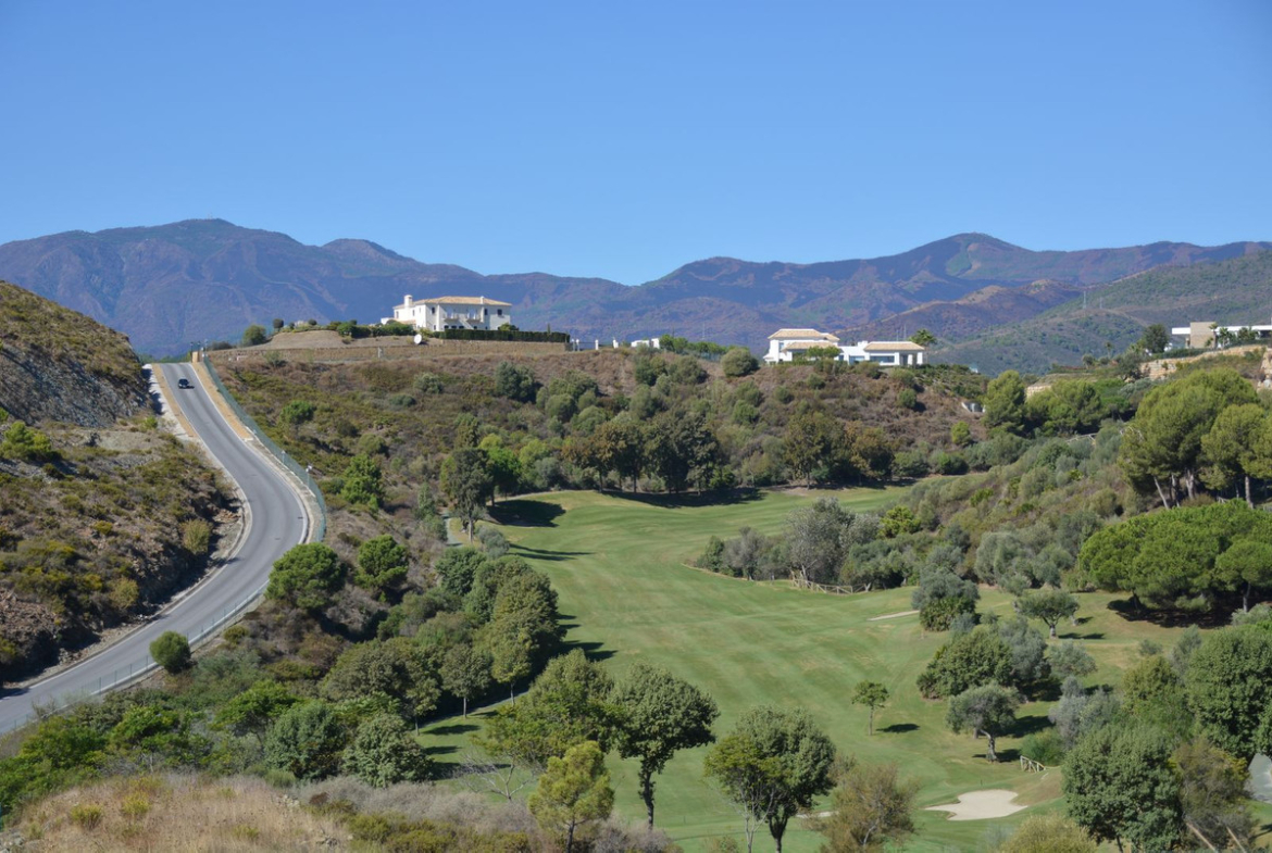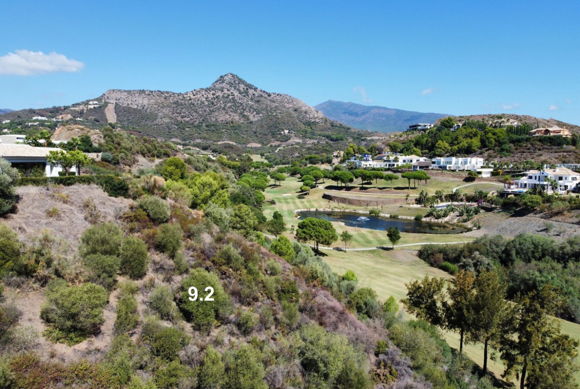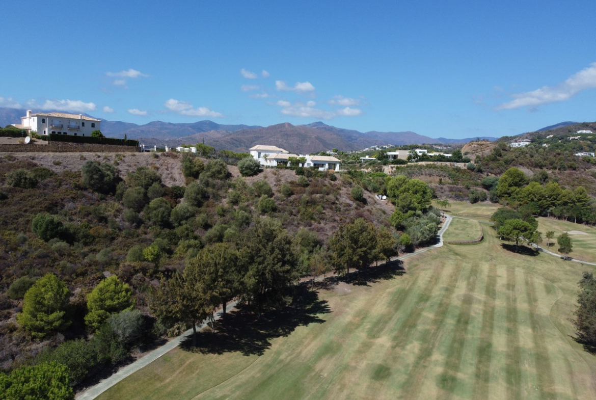 This particular plot is located on the first line of golf, with inclination and views towards the golf and Monte Mayor, the mountain peak that names the whole area. It has about 4,688 m2 of surface area, which gives it about 497 m2 of buildable space on ground floor plus 1, in addition to the basement and open terraces that do not count.