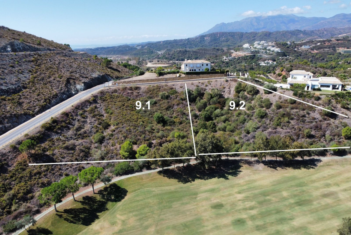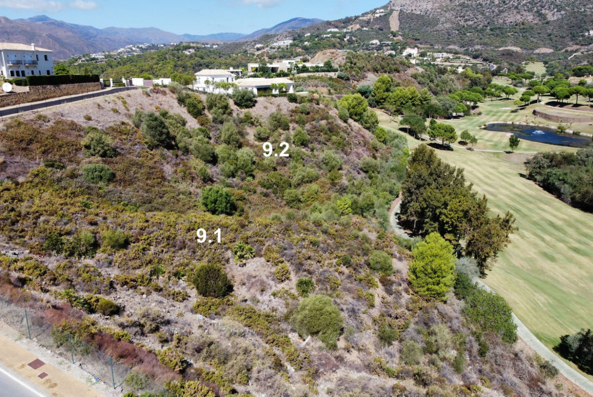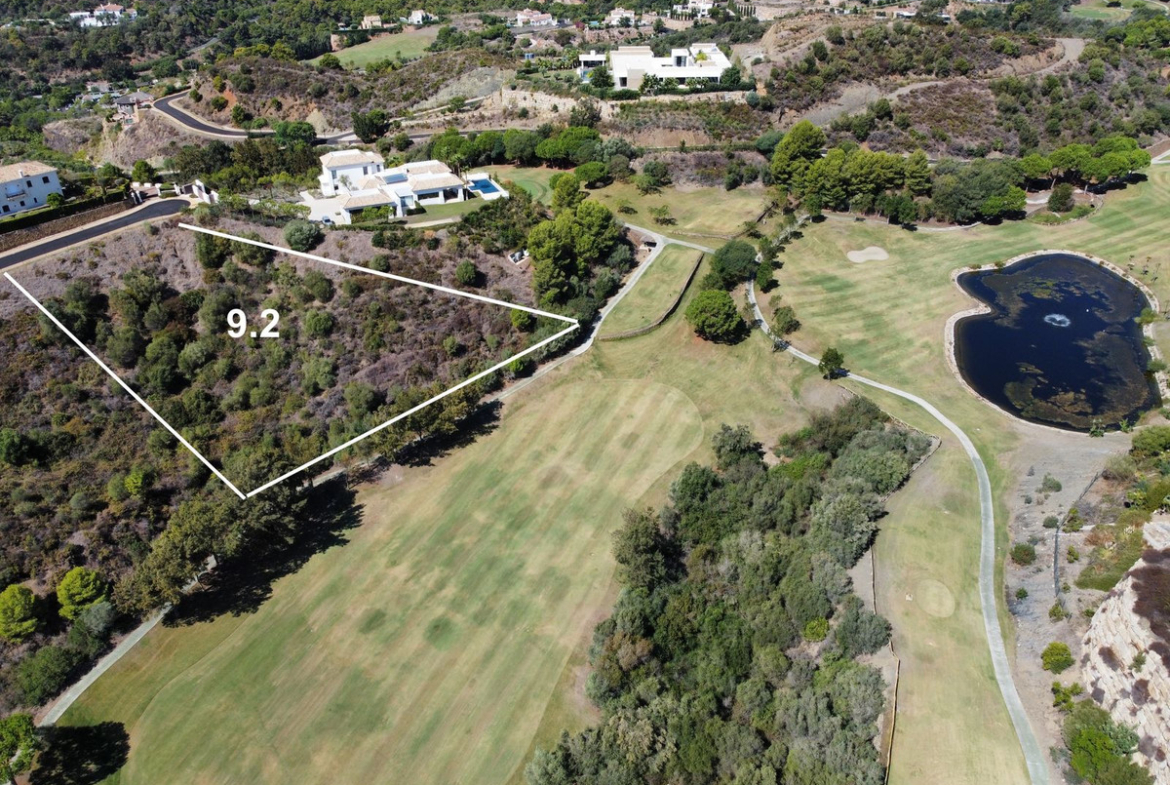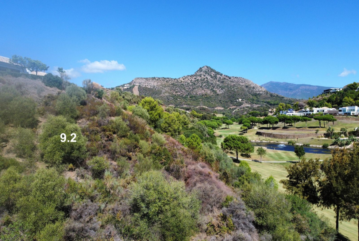 This particular plot is located on the first line of golf, with inclination and views towards the golf and Monte Mayor, the mountain peak that names the whole area. It has about 4,688 m2 of surface area, which gives it about 497 m2 of buildable space on ground floor plus 1, in addition to the basement and open terraces that do not count.