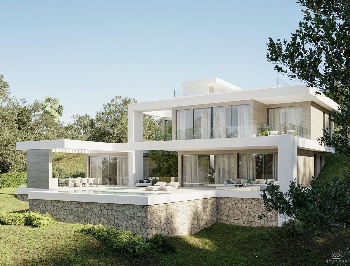 The project includes 4 individual villas developed by one of the most celebrated architects of Marbella. The villas will have spectacular views on the mountain La Concha, the emblem of the Costa del Sol, and the sea views from the rooftop solarium terraces.